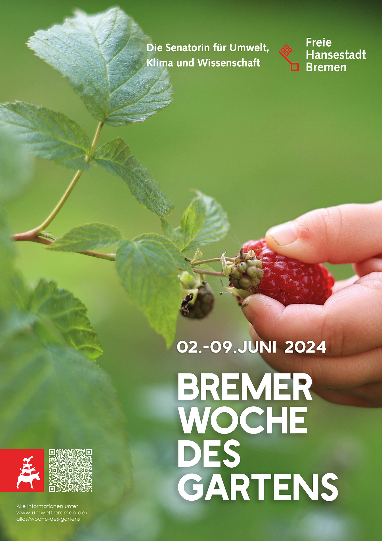 Die Woche des Gartens steht in diesem Jahr unter dem Motto "Essbare Stadt". Hiermit werden die vielfältigen Funktionen der bremischen Haus- und Kleingärten, Parks und bewirtschafteten Brachflächen gewürdigt und es wird gezeigt, was es in den Gärten Essbares zu entdecken gibt – von Obst, Gemüse und Nüssen, über essbare Wildpflanzen bis hin zu Nahrungsquellen für die heimische Tierwelt. Bremen kann sich auf ein buntes Programm und die ein oder andere Kostprobe freuen – ein frisch gepflückter Kamillen- oder Holunderblütentee, Rhabarber aus dem Garten und Workshops zur gemeinschaftlichen Herstellung eines Wildkräutersalats.