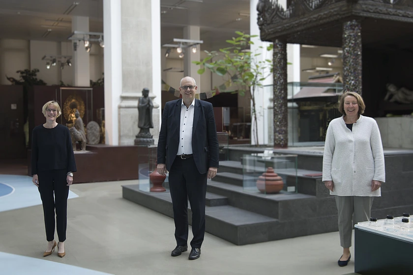 Der Senator für Kultur, Bürgermeister Dr. Andreas Bovenschulte, besuchte am heutigen Mittwoch das Übersee-Museum. Mit der Direktorin des Museums, Prof. Dr. Wiebke Ahrndt, und der Geschäftsführerin Gabriele Müller sprach er über die langfristigen Konsequenzen, die das Museum aus der Corona-Krise zieht und die aktuellen Digitalisierungsprojekte des Hauses. „Für mich sind Kunst und Kultur ein Grundnahrungsmittel unserer Gesellschaft, und daher freue ich mich sehr, dass der Besuch im Übersee-Museum und den anderen bremischen Museen unter den geltenden Corona-Regelungen inzwischen wieder möglich ist“, betonte Bürgermeister Dr. Bovenschulte. „Anhand von Original-Exponaten gibt das Museum vielfältige Einblicke in außereuropäische Natur- und Kulturräume. Dabei setzt das Museum einen starken Gegenwartsbezug. Das Haus zeigt auf, inwieweit Bremen mit der ganzen Welt verknüpft ist und bereitet globale Entwicklungslinien für das Publikum auf – und dies ist in diesen Zeiten dringend nötig.“