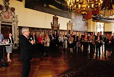 10.06.2014Der Senator für Kultur, Bürgermeister Jens Böhrnsen, hat anlässlich des in Bremen veranstalteten 103. Deutschen Bibliothekartags auf die gesellschaftliche Relevanz von Bibliotheksangeboten hingewiesen: „Im Kern der Bibliotheksarbeit steht für mich nach wie vor die Aufgabe, möglichst allen Menschen den Zugang zu Informationen und Literatur zu ermöglichen, und zwar unabhängig von ihrem Geldbeutel. Die Teilhabe der Bürgerinnen und Bürger an Kultur ist nicht nur ein Sahnehäubchen in wirtschaftlich guten Zeiten, sondern integraler Bestandteil der Lebensqualität in einer Stadt“, betonte Bürgermeister Böhrnsen, der sowohl beim Eröffnungsabend sprach als auch für die auswärtigen Gäste der Veranstaltung einen Senatsempfang in der Oberen Rathaushalle gab.