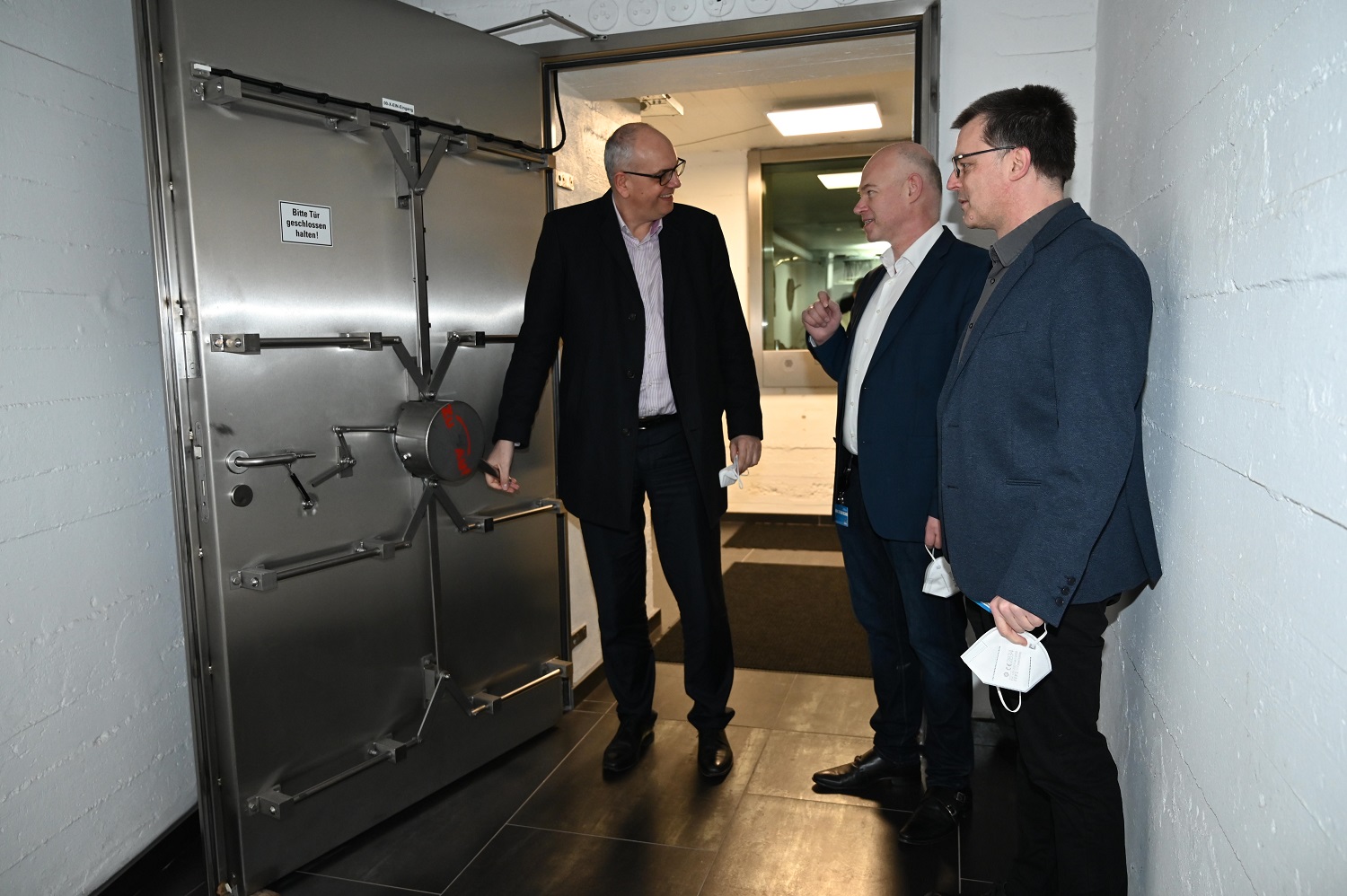 17.02.2022Bei zwei Unternehmen hat Bürgermeister Dr. Andreas Bovenschulte heute (17. Februar 2022) seine Reihe von Firmenbesuchen fortgesetzt. So unterschiedlich beide Betriebe sind, so machten sie doch deutlich, wie schwer bis unmöglich High-Tech und Low-Tech, neue und alte Geschäfte heute noch voneinander unterschieden werden können. Zunächst war Bovenschulte im in einem ehemaligen Atombunker untergebrachten Rechenzentrum der ColocationIX GmbH, danach beim Online-Holzhändler Kahrs GmbH.