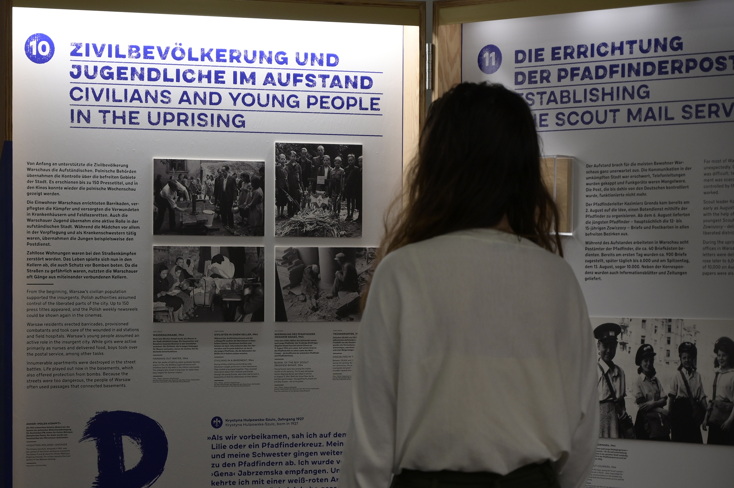 Ausstellung des Bundes der Pfadfinderinnen und Pfadfinder über die "Pfadfinderpost" während des Warschauer Aufstandes 1944 in der Unteren Halle. Foto: Senatspressestelle
