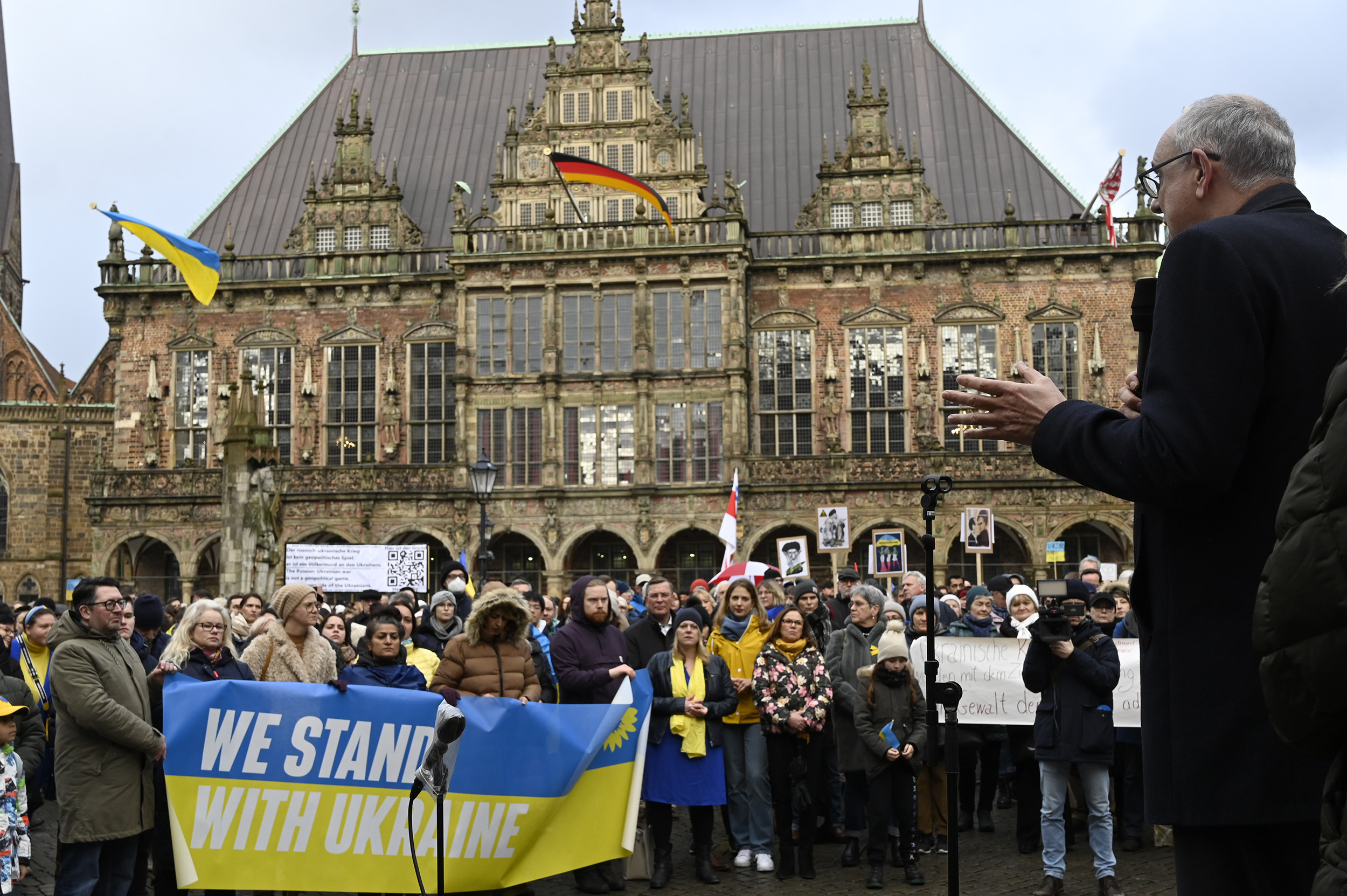 An diesem Jahrestag seien seine Gedanken ganz bei den "Millionen Ukrainerinnen und Ukrainer, die ihr Land verteidigen, die für Frieden und Freiheit kämpfen." Die ihren Traum vom Frieden nicht aufgeben, auch wenn seine Erfüllung noch in weiter Ferne scheine. Und er denke an jene, die aus der Ukraine geflüchtet sind, etwa in das Land Bremen. "Aus Gesprächen weiß ich um die Sorgen, die sie umtreiben: Wie geht es meiner Familie und meinen Freunden in der Ukraine? Wie lange wird der Krieg dauern? Wie komme ich in einem fremden Land, dessen Sprache ich nicht verstehe, zurecht? Wann kann ich zurückkehren?"