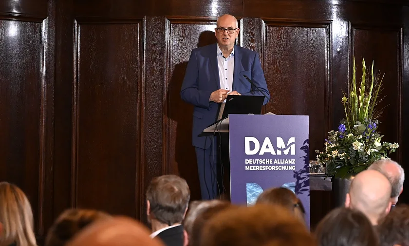 22.10.2024Zu ihrem Parlamentarischen Abend kam gestern (21. Oktober 2024) die Deutsche Allianz Meeresforschung (DAM) im Festsaal des Bremer Rathauses zusammen. Begrüßt wurde die DAM von Bürgermeister Andreas Bovenschulte und Wissenschaftssenatorin Kathrin Moosdorf. Die DAM wurde vor fünf Jahren vom Bund und den Küstenländern gegründet. Ihr Ziel ist es, die deutsche Meeresforschung zu koordinieren und zu fördern.