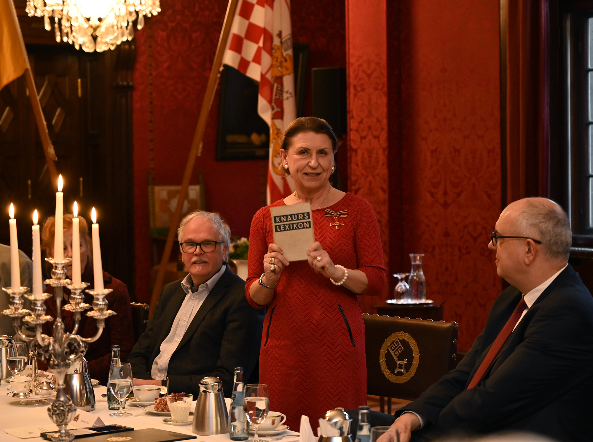 Bürgermeister Bovenschulte: "Barbara Lison prägt nicht nur die Entwicklung der öffentlichen Bibliotheken in der Freien Hansestadt Bremen, sondern weit über die Grenzen hinaus. Sie wirkt aktiv in internationalen und nationalen Bibliotheksverbänden mit. Auch während der Corona-Pandemie setzt sie sich für gesellschaftlichen Zusammenhalt, Vernetzung und Austausch innerhalb der Bibliothekswelt ein, aber auch dafür, dass diese für Bremerinnen und Bremer wieder geöffnet werden. Aktuell ist sie Präsidentin des Weltverbands der Bibliotheken und gilt damit als wichtigste Interessenvertreterin für die Bibliotheken weltweit."
