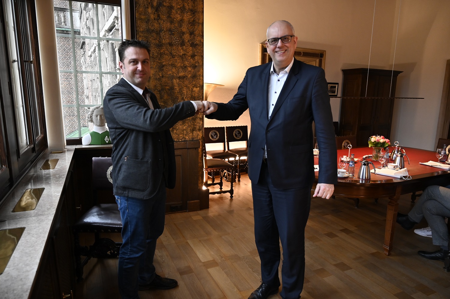 Der Mitte Januar in das Amt des Vorsitzenden des DGB-Bremen gewählte Dr. Ernesto Harder ist heute (18. Februar 2022) zu seinem Antrittsbesuch bei Bürgermeister Dr. Andreas Bovenschulte in das Bremer Rathaus gekommen. Bovenschulte sprach mit ihm über aktuelle arbeitsmarkt- und sozialpolitische Themen in seinem Amtszimmer.