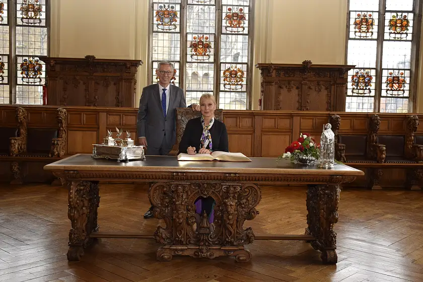 Eintrag in das Goldene Buch im Senatsgestühl der Oberen Halle