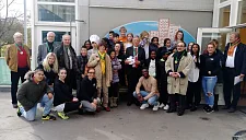 Über die Arbeit des Mütterzentrums und des Jugendhauses Tenever hat sich Bürgermeister Carsten Sieling bei einem Stadtteilbesuch am 27. April 2017 informiert. Sieling ließ sich die engagierte Arbeit des Mütterzentrums erläutern, welches Frauen beim Wiedereinstieg in den Beruf hilft und Fortbildungen anbietet. In einer lockeren Runde im "Café Gabriely" kam der Bürgermeister mit einer Integrationsgruppe ins Gespräch, nahm die Wünsche der Bewohnerinnen und Bewohner des Ortsteils nach einer besseren Nahversorgung auf. Ein wichtiges Thema waren auch die Probleme der Einrichtung bei der Beantragung von Mitteln. Beim anschließendem Rundgang machte sich der Bürgermeister ein Bild von der positiven Entwicklung des Quartiers. Begleitet wurde er dabei unter anderem von Quartiersmanagerin Katrin Höpker, dem GEWOBA-Vorstandsvorsitzenden Peter Stubbe, GEWOBA-Geschäftsbereichsleiter Ralf Schumann, Christa Brämsmann vom Mütterzentrum, Cemile Tolan vom Jugendhaus Tenever, dem Osterholzer Ortsamtsleiter Ulrich Schlüter und Beiratssprecher Wolfgang Haase.