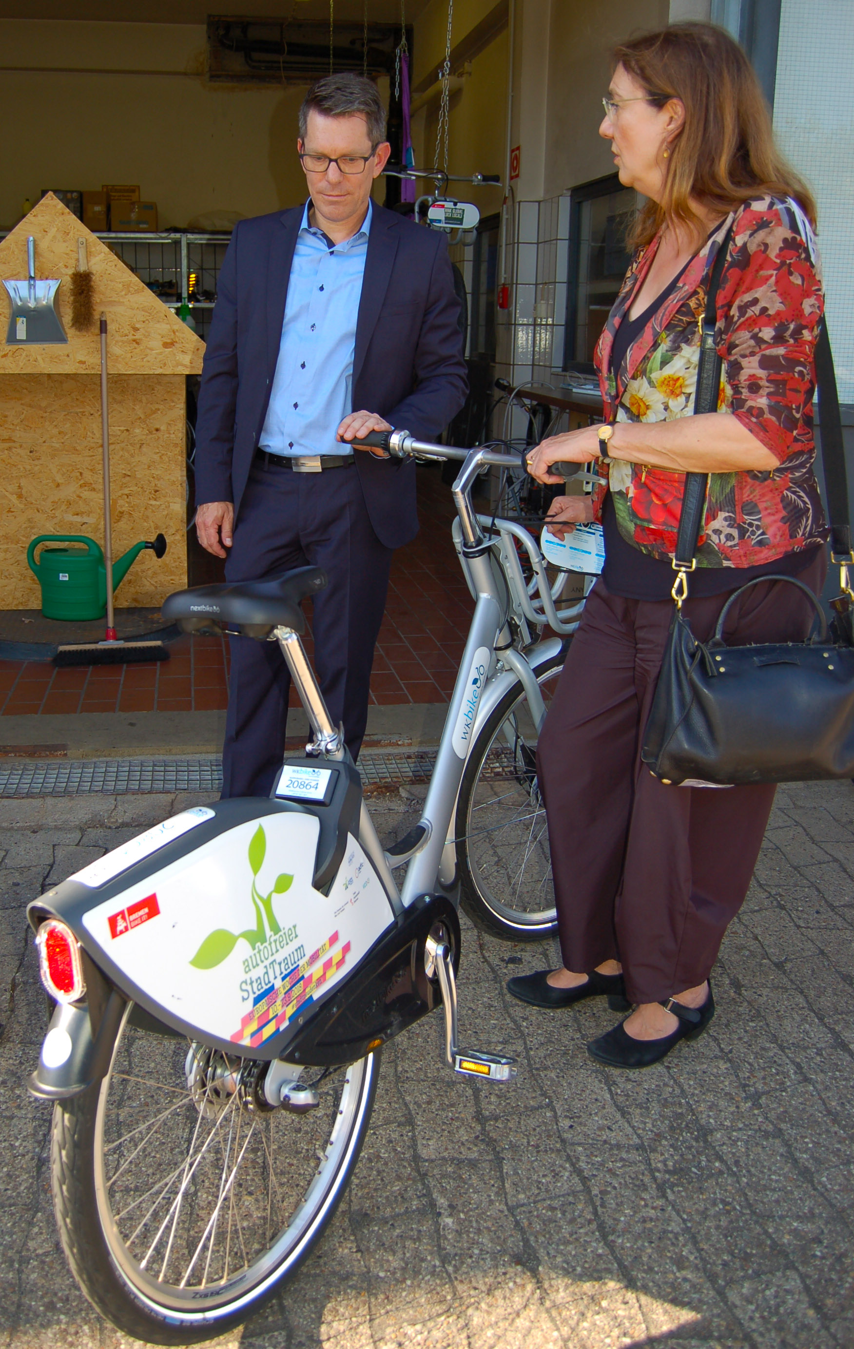 Jan Leßmann informiert Karoline Linnert über das WK-Bike-Projekt.