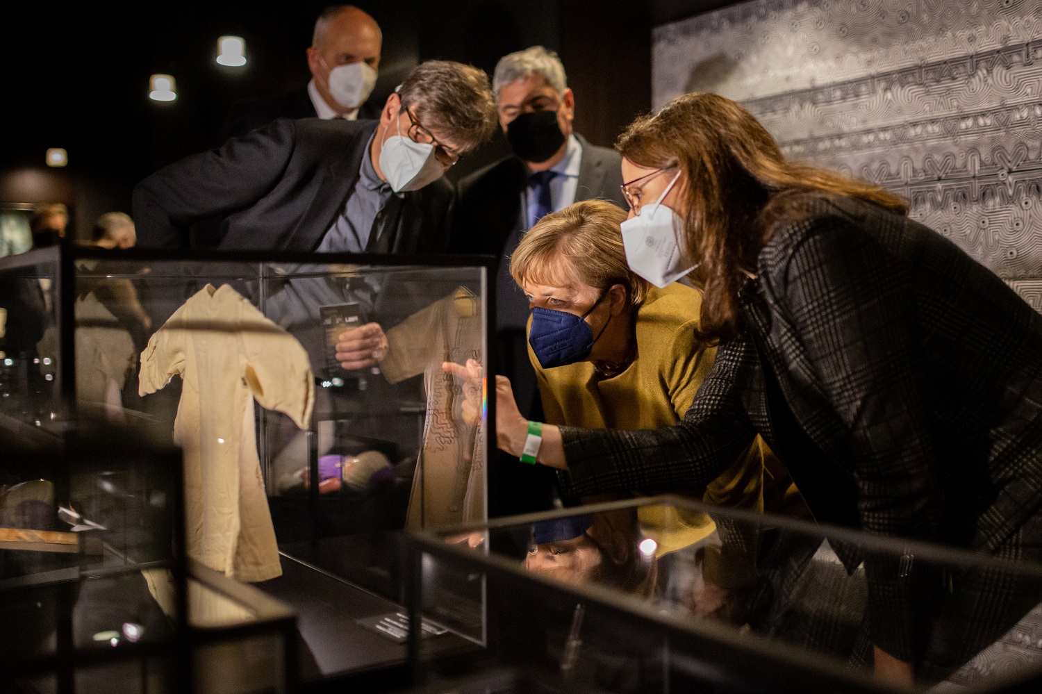 Bundeskanzlerin Angela Merkel hat sich heute (4. November 2021) mit einem Besuch im Deutschen Auswandererhaus Bremerhaven (DAH) vom Land Bremen und dem Bremer Senat verabschiedet. Sie traf dabei mit Vertreterinnen und Vertretern des politischen und wissenschaftlichen Lebens in Bremerhaven und Bremen zusammen. Nach einer Führung zusammen mit Bürgermeister Andreas Bovenschulte durch das DAH durch dessen geschäftsführende Direktorin, Dr. Simone Blaschka, sowie den Architekten des Auswandererhauses, Andreas Heller, traf die Kanzlerin sich noch zu einem Gespräch, an dem neben Bovenschulte und Blasckka auch Häfen- und Wissenschaftssenatorin Claudia Schilling, Bremerhavens Oberbürgermeister Melf Grantz, Prof. Dr. Antje Boetius (Direktorin Alfred-Wegener-Institut) und Arne Dunker (Geschäftsführer Klimahaus Bremerhaven) teilnahmen. Zu Beginn ihres Besuchs hatte die Bundeskanzlerin sich in das Goldene Buch Bremerhavens sowie das Gästebuch des Deutschen Auswandererhauses eingetragen.