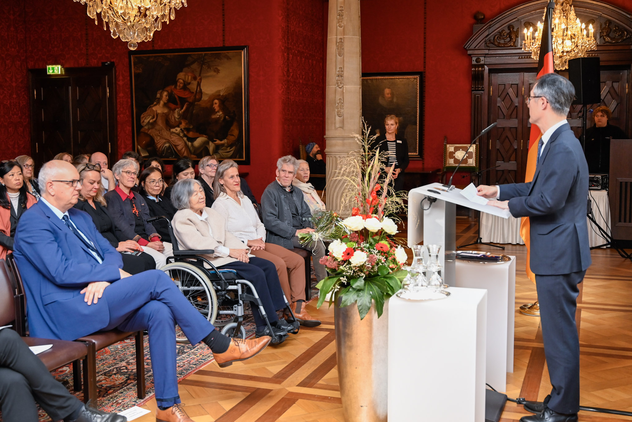 Die Komponistin und Professorin Younghi Pagh-Paan wurde heute (Mittwoch, 29. Oktober 2025) mit dem Verdienstkreuz der Bundesrepublik Deutschland ausgezeichnet. Bürgermeister Andreas Bovenschulte überreichte ihr die Auszeichnung im Kaminsaal des Bremer Rathauses. Sie erhält die Ehrung für ihr außergewöhnliches Lebenswerk: Pagh-Paan hat sich in besonderem Maße um die Neue Musik, den kulturellen Austausch und die Nachwuchsförderung verdient gemacht. Zur Verleihung war auch der Botschafter der Republik Korea, Lim Sang-beom, gekommen.
