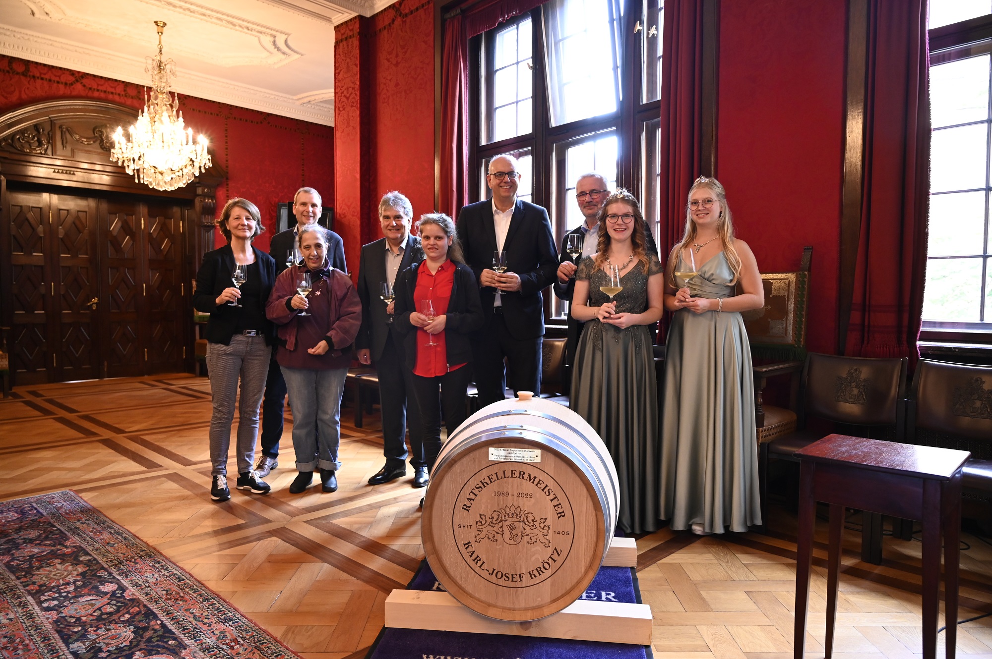 Außerdem übergaben die Verbandsgemeinde Bernkastel-Kues und der Förderverein Römerkelter Erden e.V. ein ganzes Fass (225 Liter) "Erdener Treppchen" an den Bürgermeister. Mit dem Weinfass und der entsprechenden Gravur wird die langjährige Arbeit des ehemaligen Ratskellermeisters Karl-Josef Krötz gewürdigt. Zugleich wird eine neue Tradition begründet, da in Zukunft jeder Bremer Ratskellermeister ein eigens gestaltetes Fass im köstlichen Fundament des Bremer Rathauses bekommen soll. Die Übergabe übernahm Stefan Justen, Winzer und Vorsitzender des Fördervereins Römerkelter Erden e.V.: "Wir sagen Danke für die erfolgreiche Zusammenarbeit, legen das Fundament für eine neue Tradition und freuen uns auf die nun bevorstehende Weinlese." Unterstützung bekam Justen von zwei Weinhoheiten aus Erden, die mit den Gästen die Gläser auf eine "gute Zukunft" hoben.