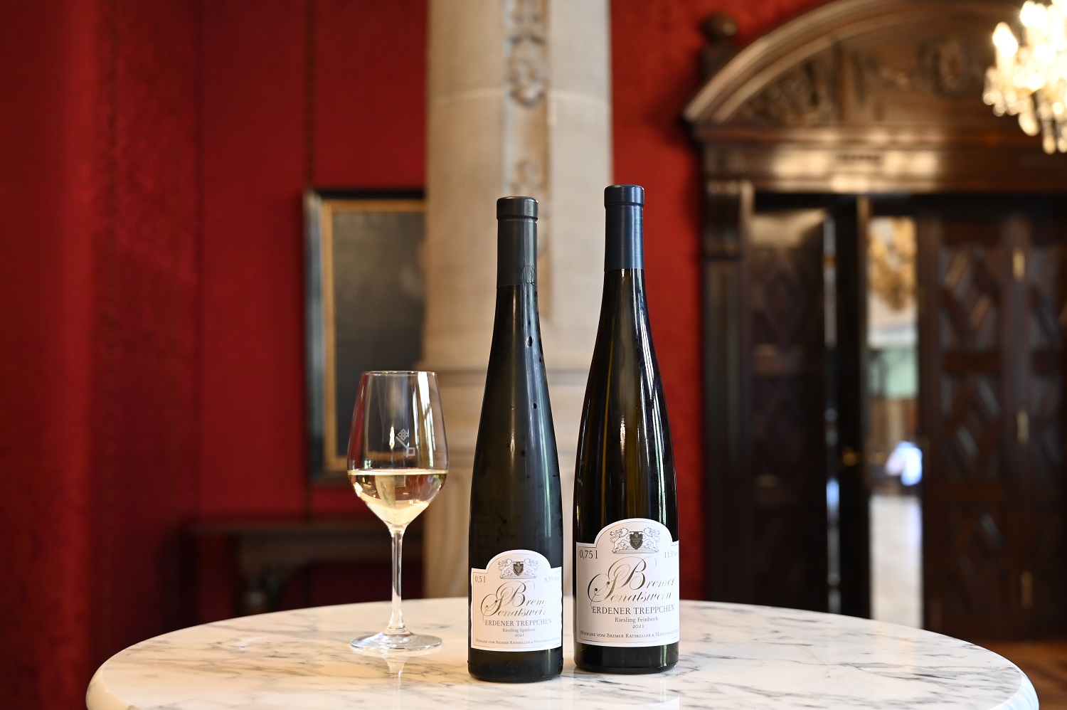 Die Bremer Senatsweine Erdener Treppchen als Riesling Feinherb und Riesling Spätlese. Foto: Senatspressestelle