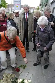 Bürgermeister Böhrnsen bei der Verlegung von „Stolpersteinen“
