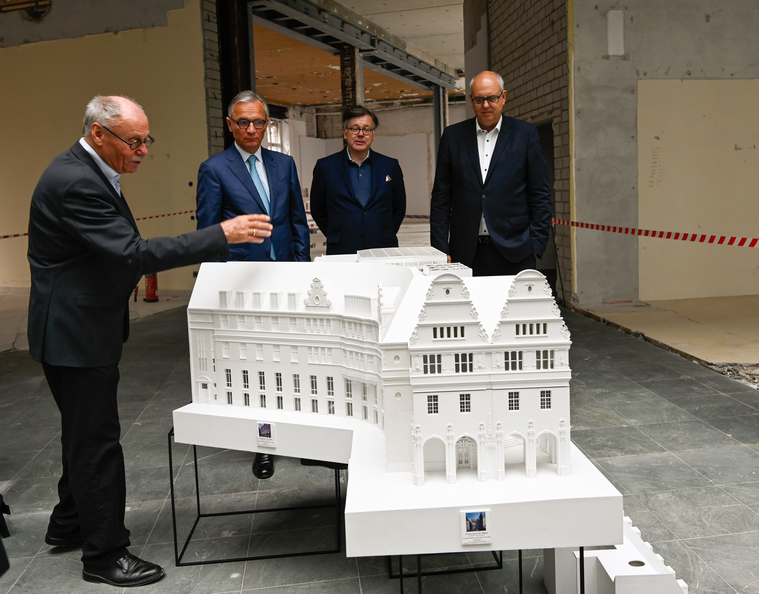 Das Balgequartier im Herzen der Bremer Innenstadt nimmt immer mehr Gestalt an: Bürgermeister und Kultursenator Dr. Andreas Bovenschulte und Investor Dr. Johann Christian Jacobs, Vorstand der Joh. Jacobs & Co. Gruppe, unterzeichneten heute symbolisch den Mietvertrag für das neue Stadtmusikanten- und Literaturhaus, das im Kontorhaus am Markt entsteht. Bereits im Frühjahr 2023 hatten der Bremer Senat und die Kulturdeputation dem Abschluss des Mietvertrags über eine Fläche von circa 2.800 Quadratmetern, verteilt auf drei Geschosse, zugestimmt und damit die Weichen für das innovative Projekt gestellt. Die Eröffnung ist für 2025 geplant.