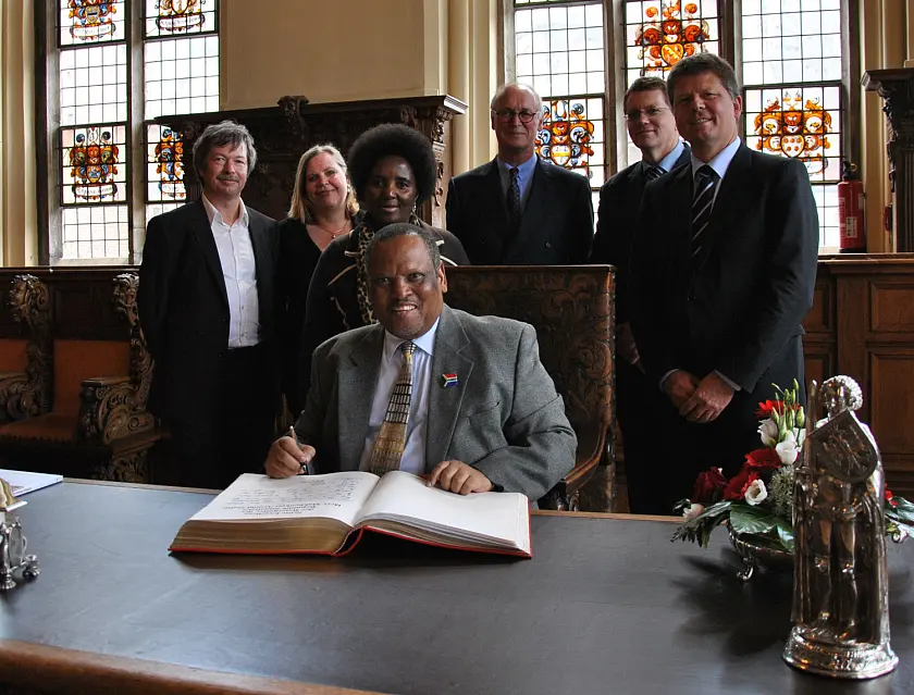 Um an die besondere Solidarität des LandesBremen während des Freiheitskampfes gegen die Apartheid zur Zeit der 70er und 80er Jahre zu erinnern, schrieb der Botschafter folgendes Grußwort in das Goldene Buch: „It´s a great honor to be in a city that supported the struggle for South Africa´s Liberation for so long!“- „Es ist eine große Ehre in einer Stadt zu sein, die den Südafrikanischen Freiheitskampf so lang unterstützt hat!“