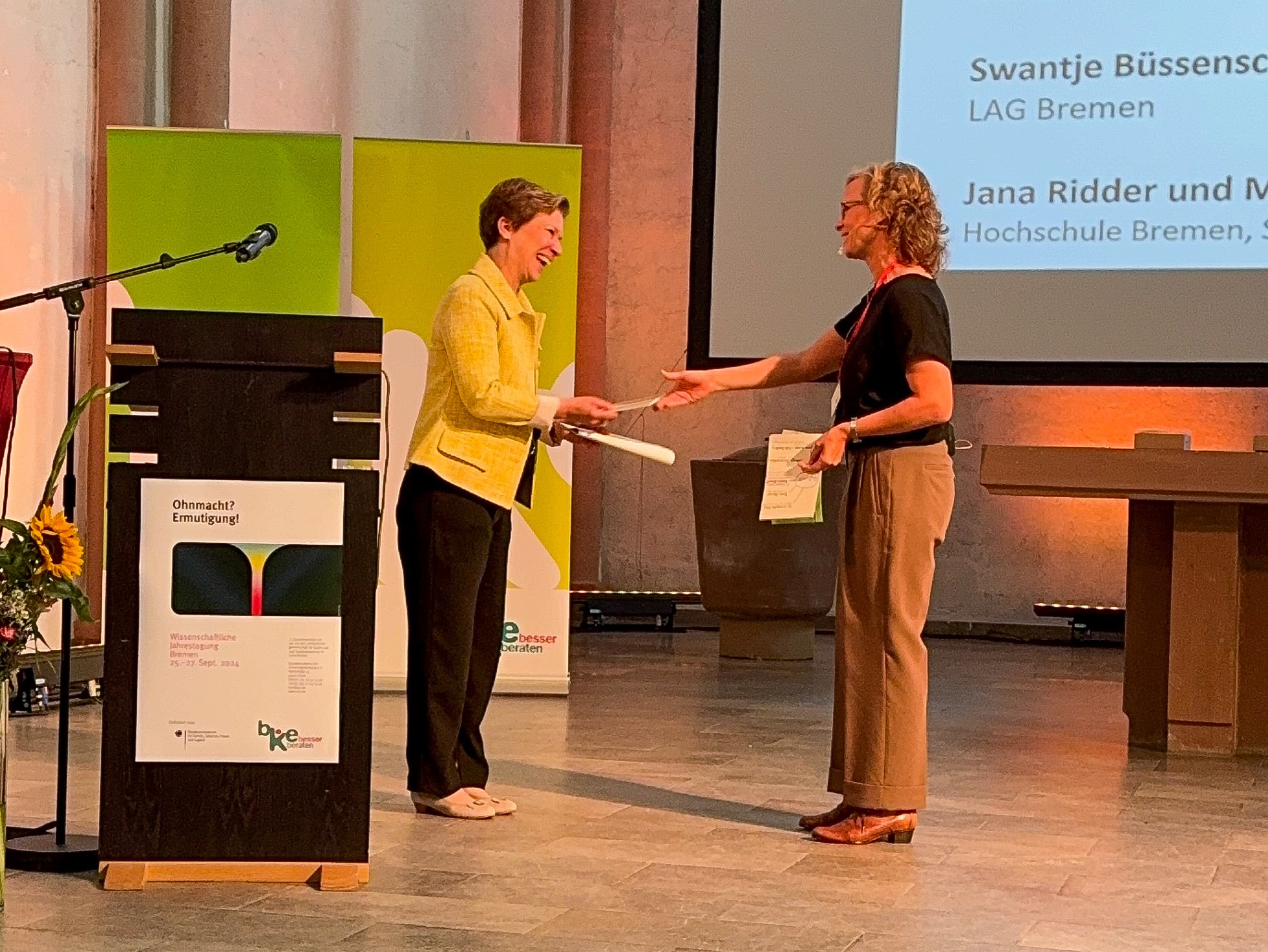 Die Wissenschaftliche Jahrestagung der Bundeskonferenz für Erziehungsberatung wird zusammen mit der Landesarbeitsgemeinschaft für Erziehungsberatung Bremen (LAG Bremen) veranstaltet. Auf dem Tagungsprogramm in der Kulturkirche St. Stephani und der Hochschule Bremen stehen bis Freitag, 27. September, Vorträge aus Forschung und Praxis unter anderem vom Bremer Armutsforscher Dr. René Böhme, verschiedene Workshops sowie Weiterbildung und Austausch. Den Eröffnungsvortrag hält der finnische Familientherapeut Ben Furman zum Thema "Der lösungsfokussierte Ansatz als Werkzeug für Ermutigung und Handlungsfähigkeit". Im Rahmen der Kooperation der bke mit dem Studiengang Soziale Arbeit präsentieren Studierende der Hochschule eine Umfrage zum Thema Ohnmacht unter Bremer Familien.