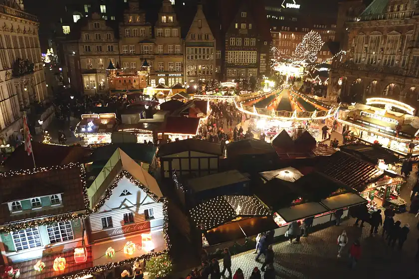 Ab dem 26. November 2018 verwandelt sich die Bremer Innenstadt wieder in ein weihnachtliches Dorf aus Kunsthandwerksständen, Karussells und kulinarischen Verführungen und lädt rund um den Roland, das Rathaus und die Bremer Stadtmusikanten zu einem Bummel über den Weihnachtsmarkt ein. Rund drei Millionen Besucherinnen und Besucher aus dem In- und Ausland lassen sich jedes Jahr in Bremen in vorweihnachtliche Stimmung versetzen. Mit seinen 176 Ständen bietet der Markt bis einschließlich 23. Dezember alles, was das Herz begehrt: Kunsthandwerk, Schmuck, Kerzen und Pralinen, eine Runde mit dem Kinderkarussell oder dem historischen Riesenrad. Natürlich fehlen auch kulinarische Genüsse nicht. Neben Klassikern wie Poffertjes, Kartoffelpuffer, Bratwurst und Glühwein, wird selbstgemachter Lebkuchen, gebackener Camembert oder Raclette angeboten.