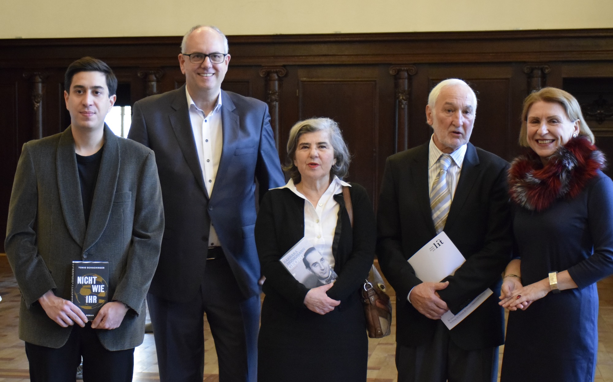 Preisverleihung Bremer #Literaturpreis 2020. Tonio Schachinger, Bürgermeister Andreas Bovenschulte, Barbara Honigmann, Michael Sieber, Barbara Lison
