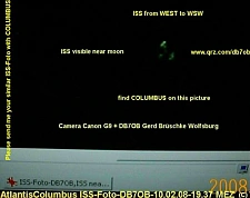 Funkamateur Gerd Brüschke aus Wolfsburg-Ehmen hat am 10. Februar um 19.37 Uhr mit seiner Kamera einen Foto-Schnappschuss gemacht und dabei sowohl die Internationale Raumstation ISS und das Columbus Weltraumlabor aufgenommen. "Ich würde mich freuen, wenn dieses Amateurbild mit in das ISS-Protokoll aufgenommen werden könnte", so Brüschke. Auf jeden Fall aber möchte er die Aufnahme der Öffentlichkeit zur Verfügung stellen und hat es an die Pressestelle des Senats geschickt. "Toll, dass Columbus nun Teil der ISS-Weltraumstation geworden ist und dass Bremen gut im Weltraum angekommen ist", meint der Weltraum-Begeisterte.