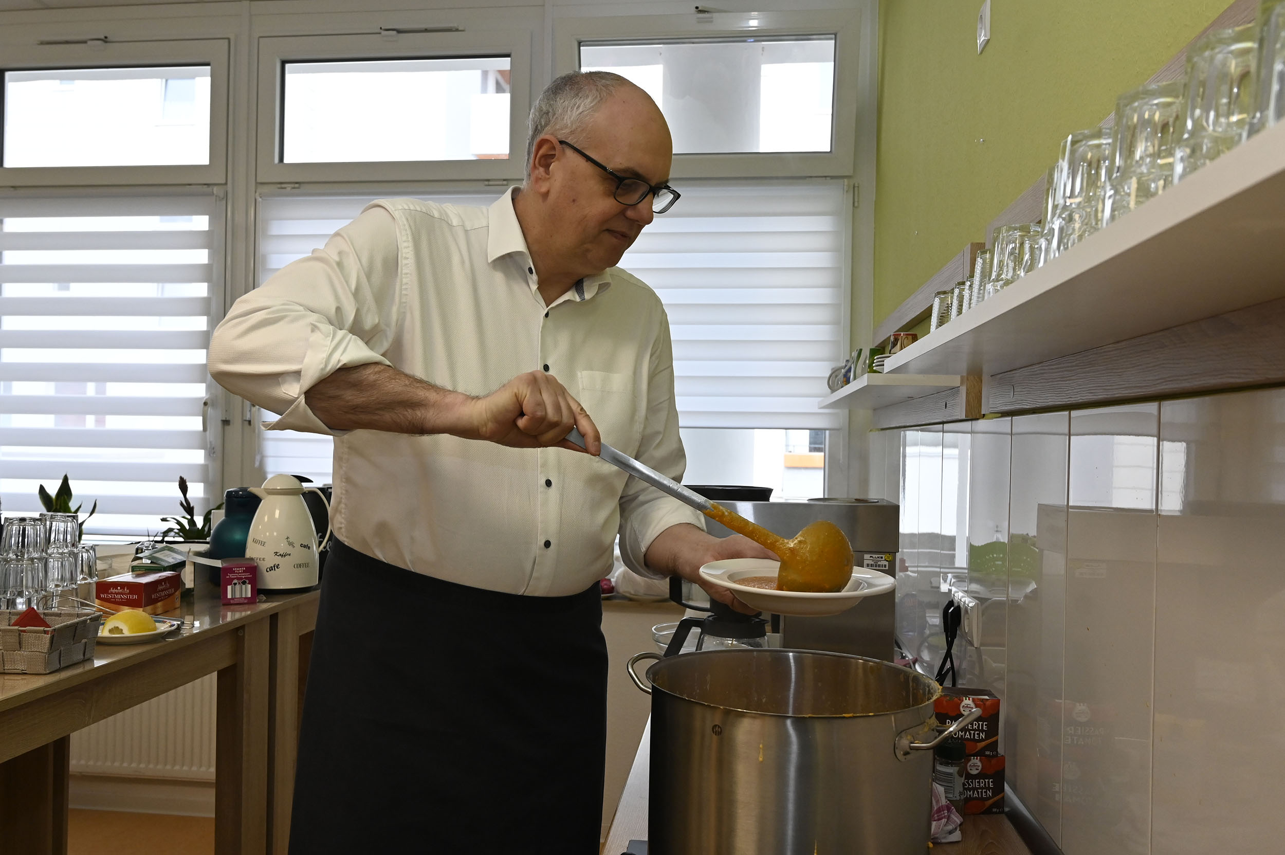 Türkische Linsensuppe und gute Gespräche: Beim gemeinsamen Kochen mit Frauen im Mütterzentrum Osterholz-Tenever e.V. unterstützte Bürgermeister Dr. Andreas Bovenschulte heute (20. Januar 2023) nicht nur beim Zubereiten der internationalen Köstlichkeiten. Er erfuhr in Gesprächen, was die Frauen in ihrem Alltag beschäftigt.