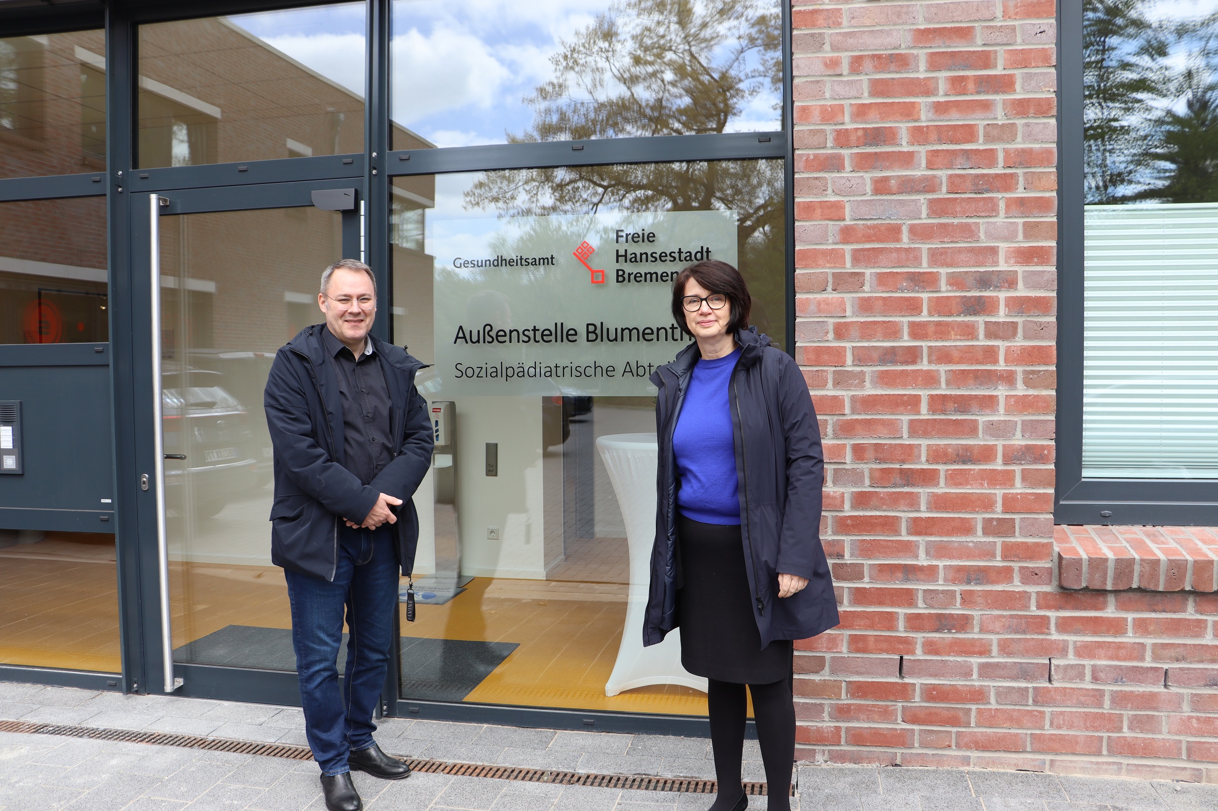 Dr. Jörn Moock (Leiter Gesundheitsamt Bremen) und Claudia Bernhard (Senatorin für Gesundheit, Frauen und Verbraucherschutz) bei der Eröffnung der neuen Außenstelle des Gesundheitsamts in Bremen Blumenthal. Foto: Gesundheitsressort