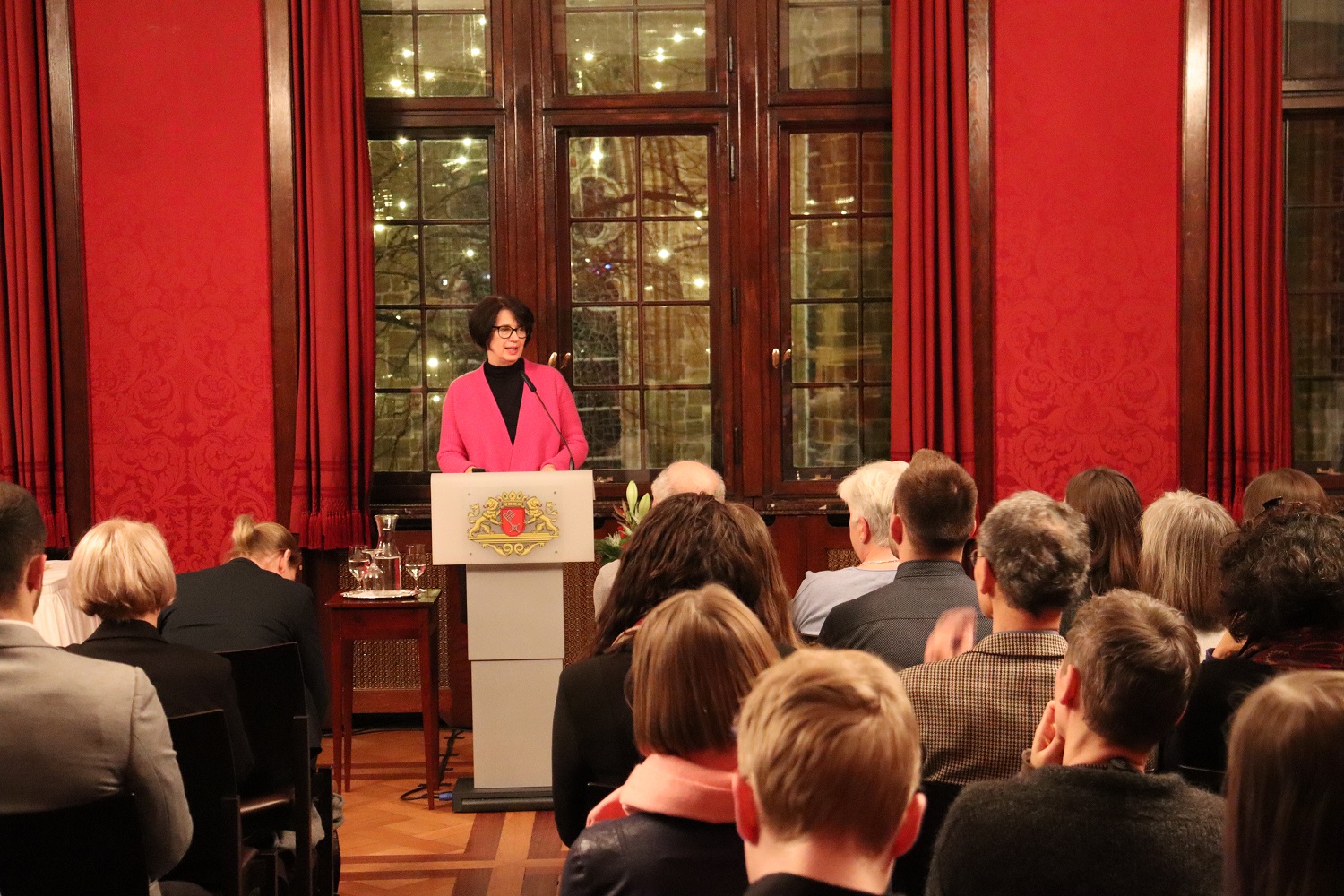 Senatorin Claudia Bernhard während ihrer Ansprache im Kaminsaal des Rathauses. Foto: Gesundheitsressort