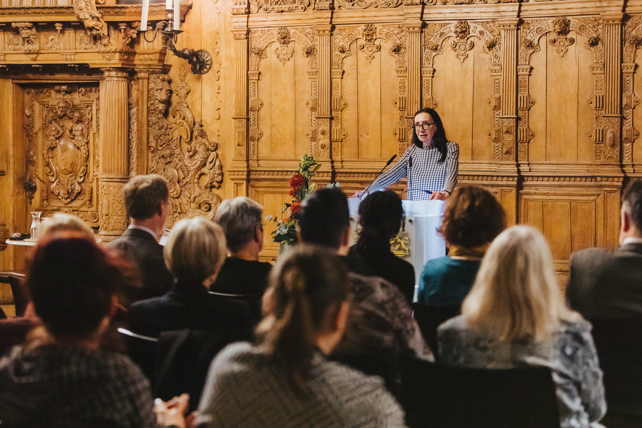 "Die Literatur ist zurück im öffentlichen Raum." Mit diesen Worten eröffnete Bremens Kulturstaatsrätin Carmen Emigholz am Dienstagabend (2. November 2021) das diesjährige globale°-Festival in der Oberen Rathaushalle. Auf der Eröffnungsveranstaltung des Festivals für grenzüberschreitende Literatur präsentierte globale°- Initiatorin Libuše Černá zusammen mit dem Leiter des Hamburger Literaturhauses, Rainer Moritz, das diesjährige Programm. Lesungen der Schriftstellerinnen Eva Menasse ("Dunkelblum") und Sharon Dodua Otoo ("Adas Raum") gaben erste Einblicke, was die Besucherinnen und Besucher in dieser Woche erwartet. Ein Grußwort sprach Cornelius Neumann-Redlin für die Unternehmensverbände im Land Bremen.