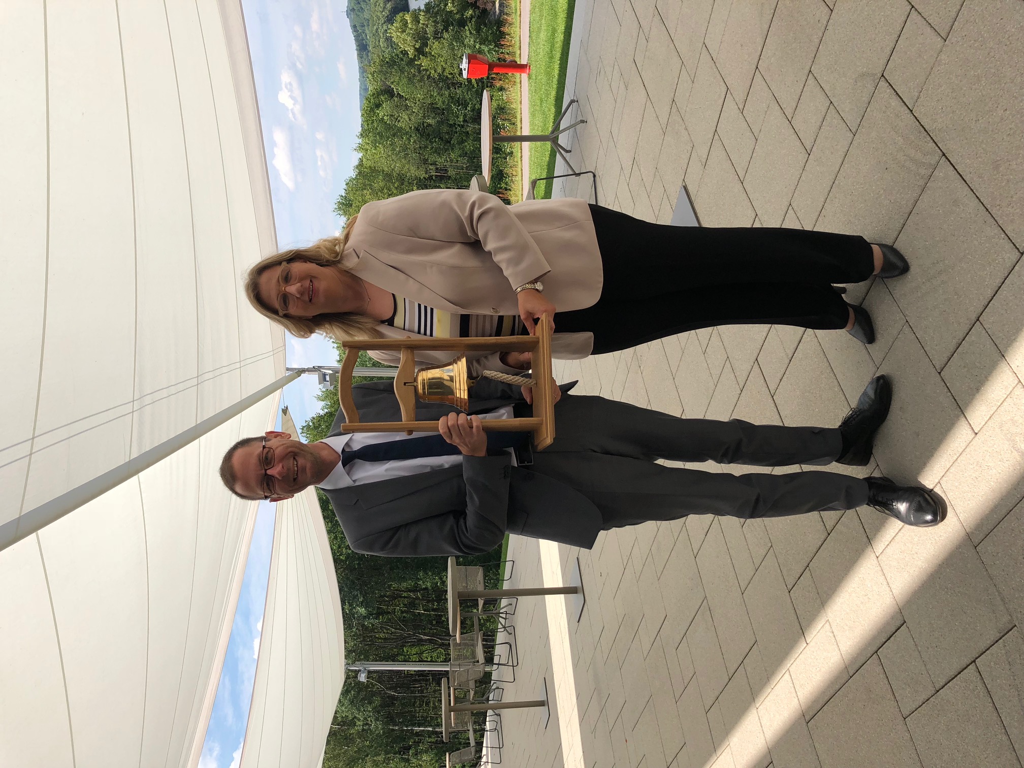 Glockenübergabe: Senator Martin Günthner übernahm den Vorsitz der Wirtschaftsministerkonferenz für die kommenden beiden Jahre von der amtierenden Vorsitzenden Anke Rehlinger, saarländische Ministerin für Wirtschaft, Arbeit, Energie und Verkehr.
