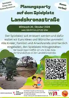 Plakat: Planungsparty auf dem Spielplatz Landskronastraße