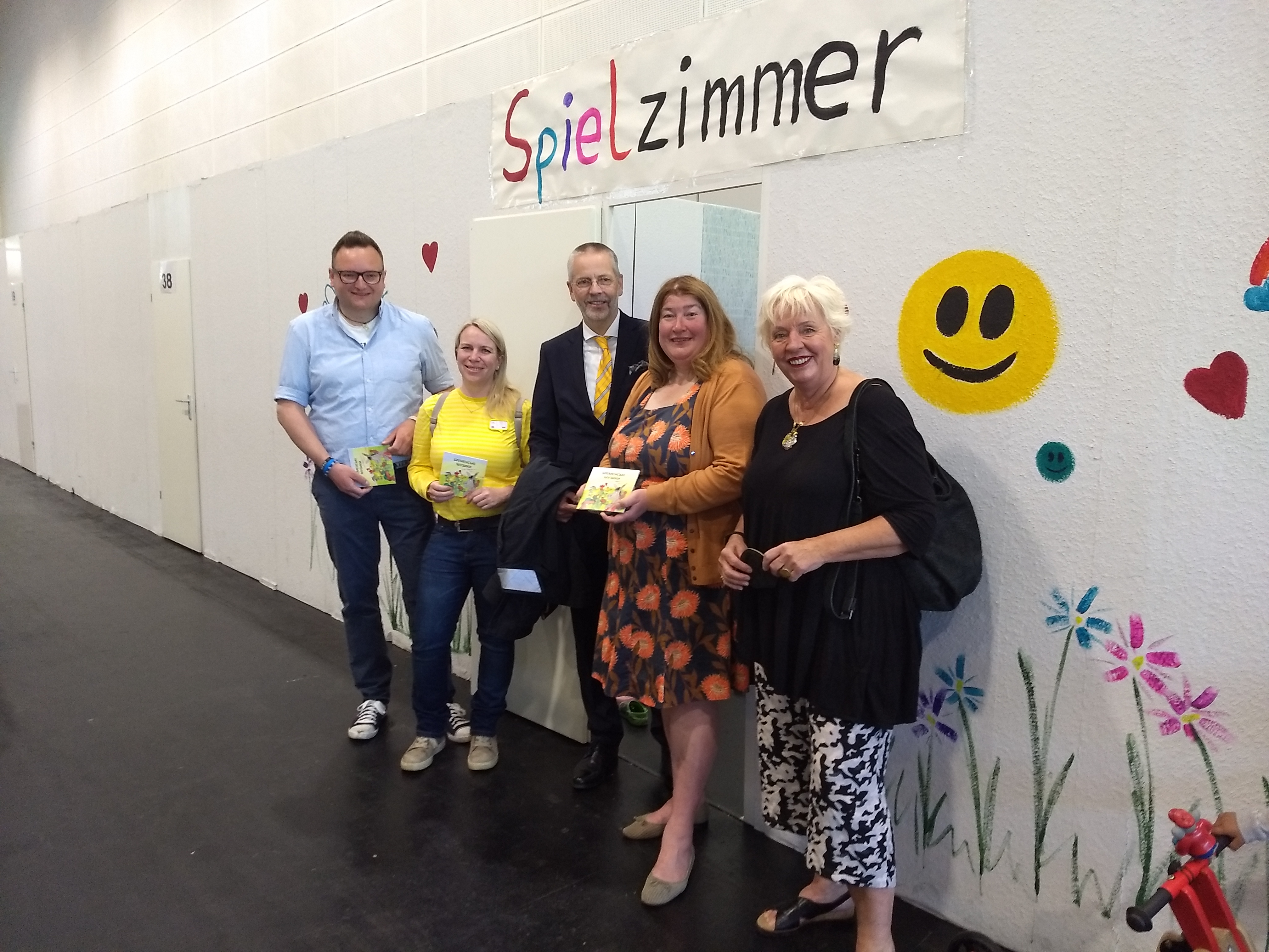 Teilen die Freude über die Spielzimmer (von links): Alexander Seidlich (Local Marketing Leader der IKEA Deutschland GmbH & Co. KG Standort Bremen), Julia Fitzke (Abteilungsleitung Logistik IKEA Deutschland GmbH & Co. KG Standort Bremen), Hermann Schünemann (BremerLeseLust, Verlag Carl Ed. Schünemann KG), Anja Stahmann (Senatorin für Soziales, Jugend, Integration und Sport der FHB), Ulrike Hövelmann (Vorsitzende BremerLeseLust). Foto: Sozialressort