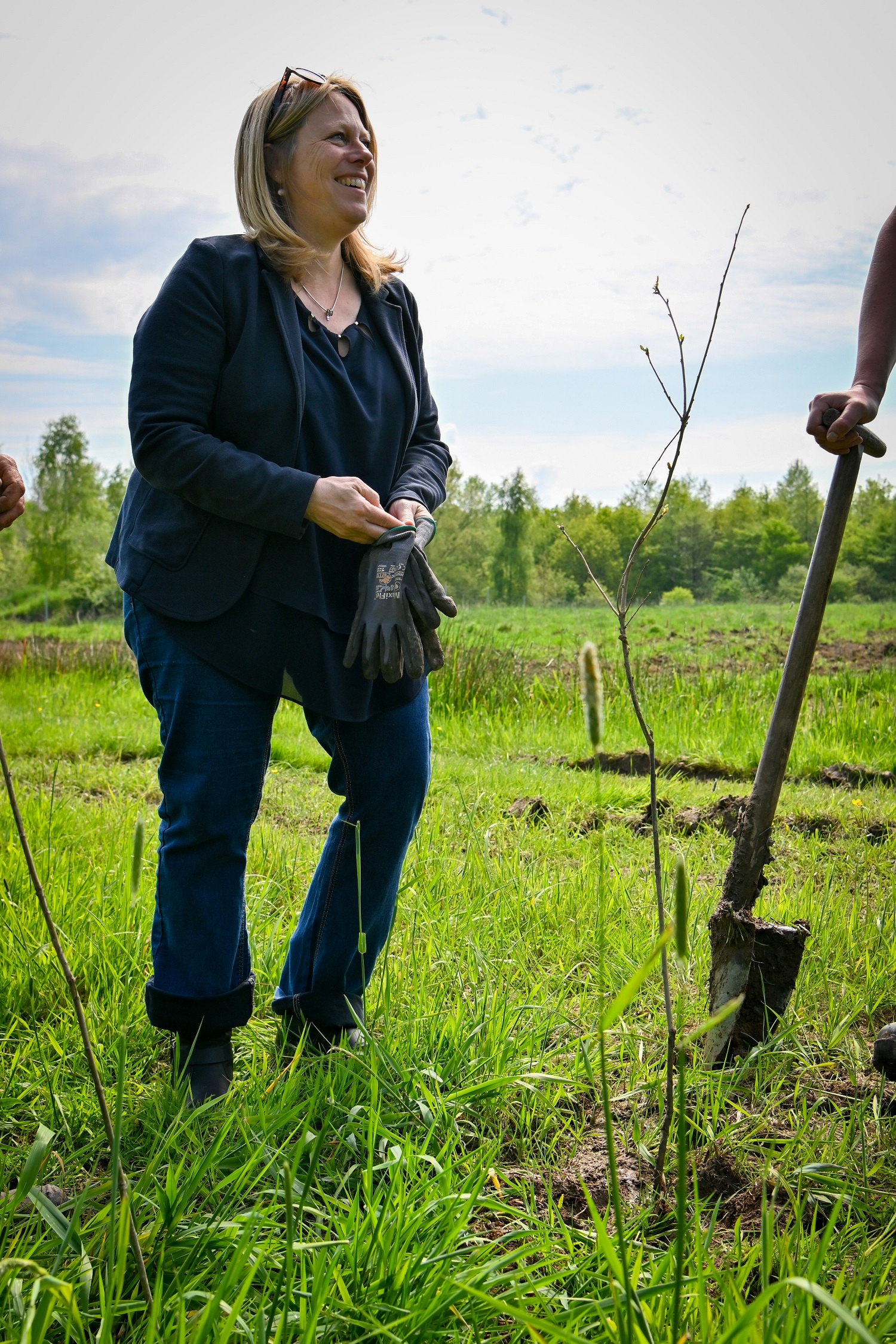 Fläche für zukünftige Kompensationsmaßnahmen aufgeforstet – abschließende Pflanzaktion mit Senatorin Schaefer