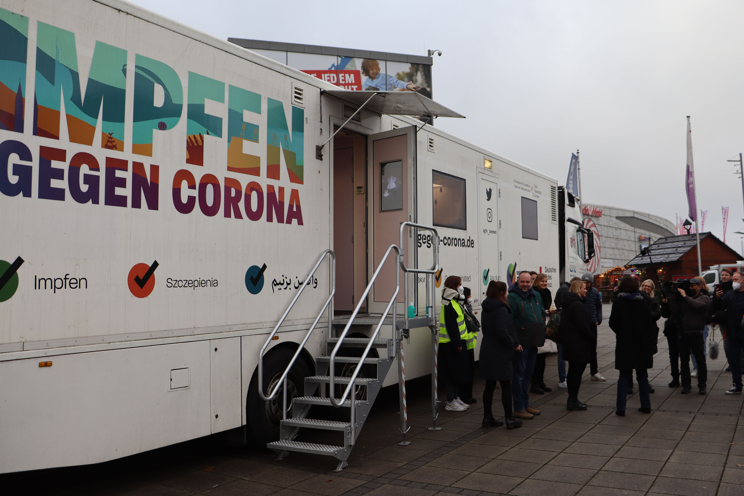 22.12.2022Die beiden Impftrucks sind heute (22. Dezember 2022) zum letzten Mal im Einsatz. Vor dem Roland Center sowie vor der Waterfront konnten sich die Bremerinnen und Bremer noch ein letztes Mal in den speziell umgebauten Lkw impfen lassen.