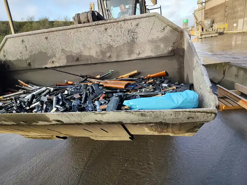 1,83 Tonnen Waffen hat Innensenator Ulrich Mäurer vernichten lassen. Darunter unter anderem Jagdgewehre, Maschinenpistolen, Schalldämpfer, Schlagringe, Macheten, Schwerter, Pfeile und noch allerhand andere Gewehre. Es handelt sich um Waffen, die nach der letzten Waffenvernichtung im Oktober 2023 bis Ende November 2024 zur Vernichtung abgegeben oder von der Polizei sichergestellt und eingezogen worden sind. Auch Waffen aus Strafverfahren, die in der Beweisstückstelle der Bremer Staatsanwaltschaft landeten, sind darunter. 2023 wurden in Bremen 2,5 Tonnen Waffen vernichtet.