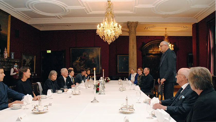 Am 17. Mai 2020 feierte Bremens Ehrenbürger Klaus Hübotter seinen 90. Geburtstag – eine für Ende Mai geplante Einladung von Bürgermeister Andreas Bovenschulte zu einer kleinen Feier im Rathaus musste coronabedingt verschoben werden. Umso mehr freuten sich alle Beteiligten, dass dieser schöne Termin heute (16. Juli 2020) nachgeholt werden konnte. Neben dem Jubilar, seiner Ehefrau Lore Hübotter und seinen zwei Töchtern mit Familien begrüßte Bürgermeister Bovenschulte das Ehepaar Uwe und Karin Hollweg sowie den Künstler Constantin Jaxy und dessen Ehefrau Jutta Jaxy zu der Kaffeetafel im Kaminsaal des Bremer Rathauses.