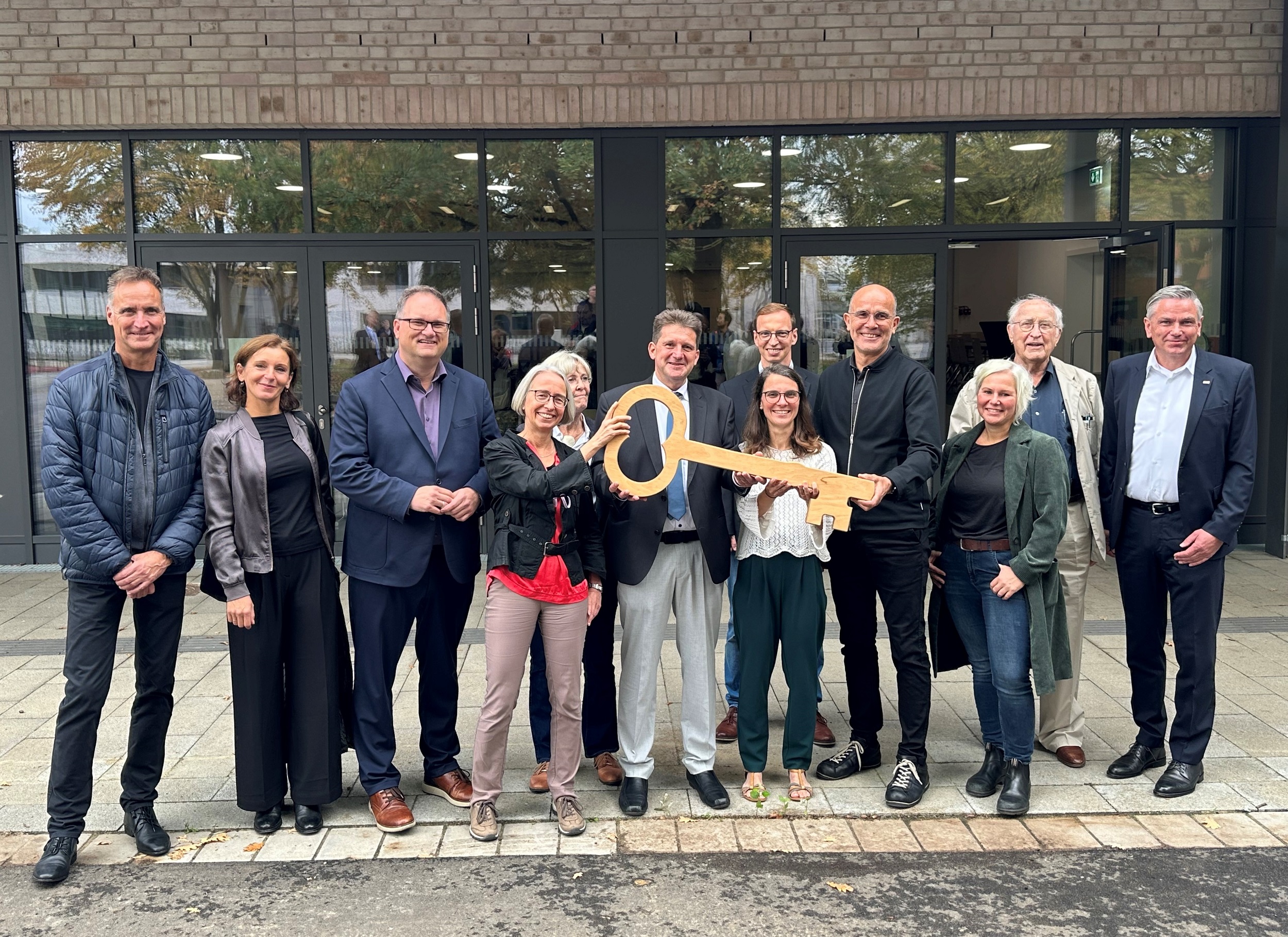 10.10.2025Von der Einschulung bis zur Oberschule: Der Kaisen Campus in Huckelriede als altersübergreifender Lernort ist ein Vierteljahr früher als geplant fertiggestellt worden. Heute (10. Oktober 2025) erfolgte im Beisein von Finanzsenator Björn Fecker die symbolische Schlüsselübergabe für das insgesamt knapp 62 Millionen Euro teure Bauprojekt an Claudia von Zmuda, Leiterin der Helene-Kaisen-Grundschule, und Oliver Seipke, Leiter der Wilhelm-Kaisen-Oberschule.
