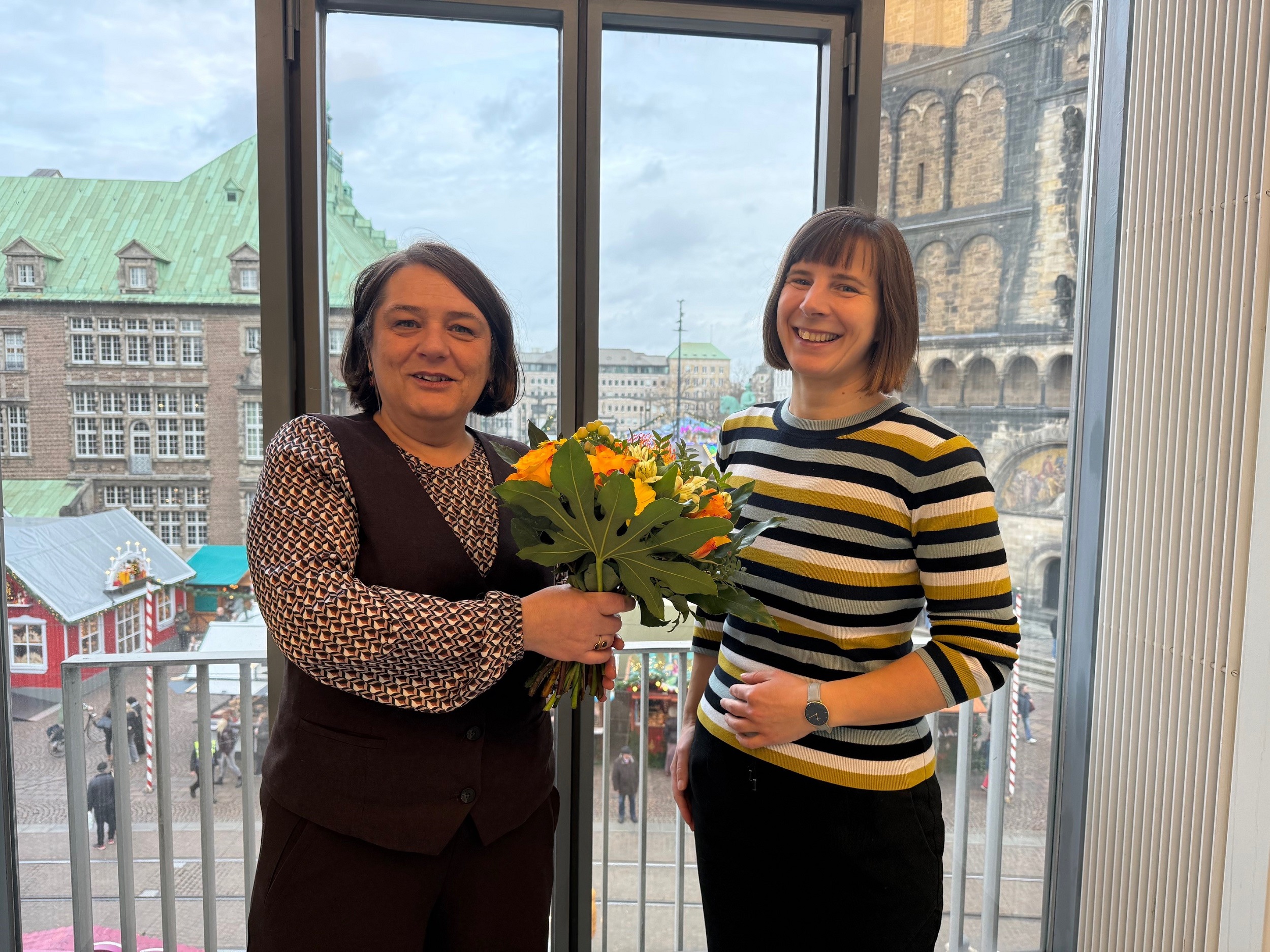 Die Senatorin für Umwelt, Klima und Wissenschaft, Henrike Müller, (links) mit ihrer neuen Staatsrätin für Wissenschaft, Karolina Kumar. Foto: Wissenschaftsressort
