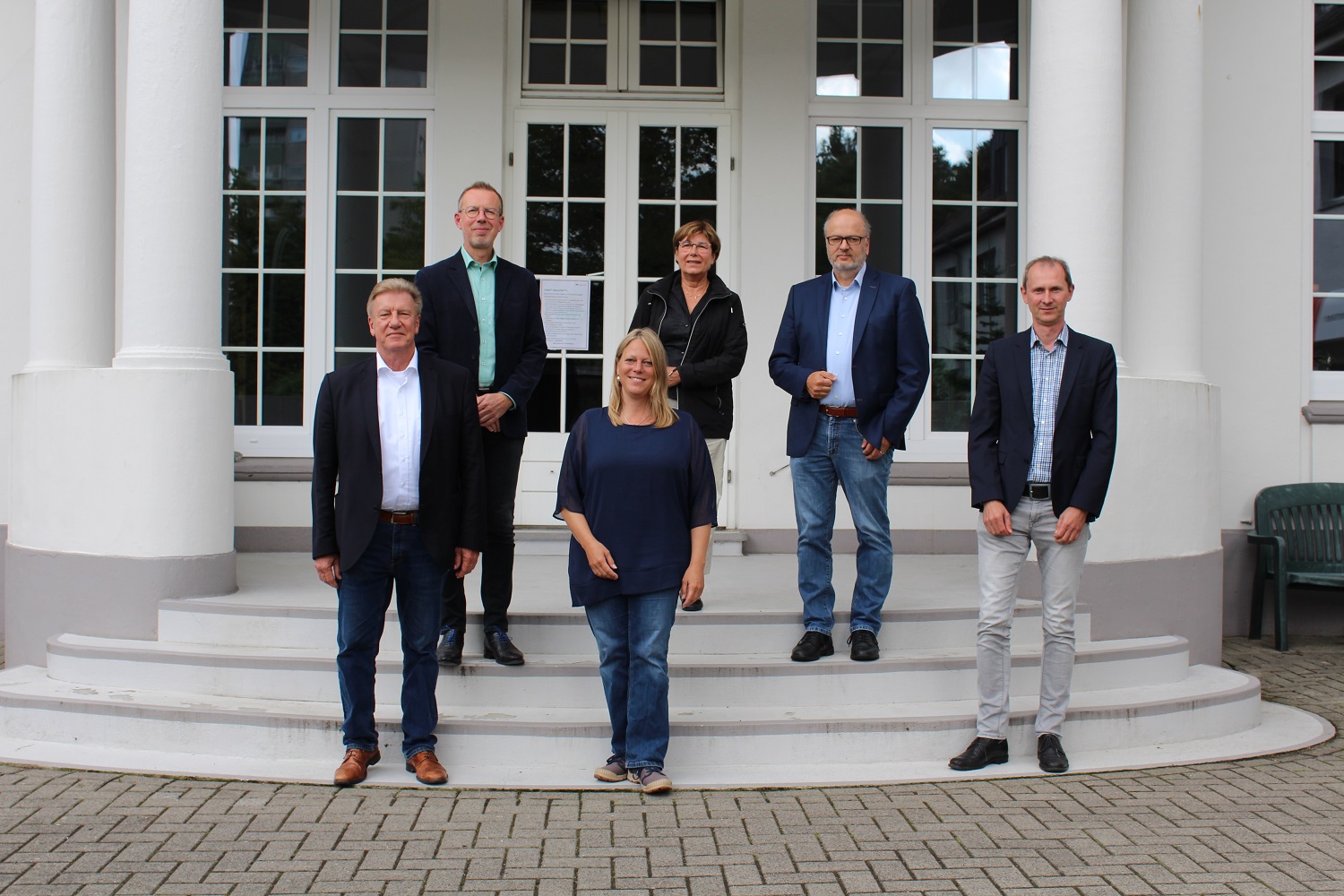 Zu Besuch bei der AWO Bremerhaven in der Seniorenresidenz Villa Schocken: (v.l.) Vorstandsvorsitzender Dr. Uwe Lissau, Geschäftsführer Siegmar Weegen und Vorstandsmitglied Sybille Böschen begrüßten Klimaschutzsenatorin Maike Schaefer, Heinfried Becker (Büroleiter energiekonsens Bremerhaven) und Martin Grocholl (Geschäftsführer energiekonsens). Foto: SKUMS