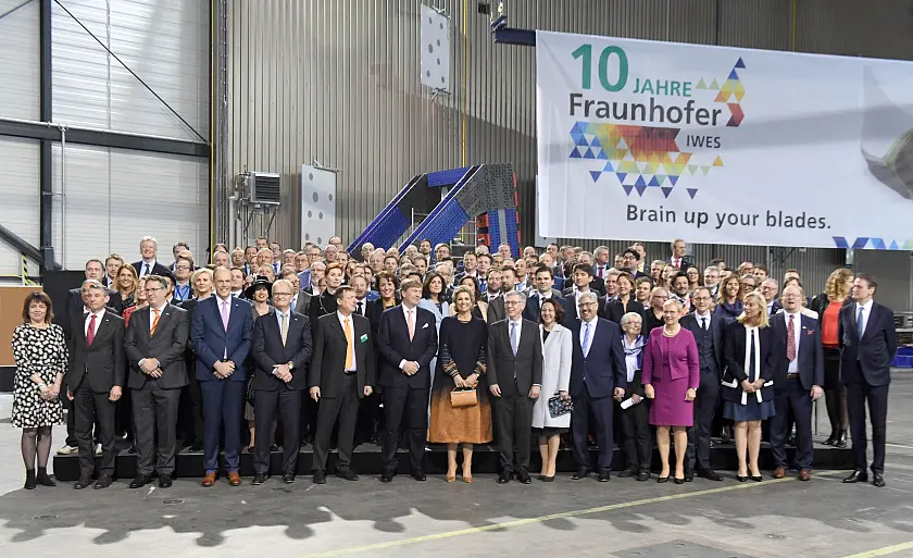 Nachmittags besuchte das Königspaar das Fraunhofer-Institut für Windenergiesysteme (IWES) in Bremerhaven. Hier wurden sie von Oberbürgermeister Melf Grantz und Stadtverordnetenvorsteherin Lückert begrüßt. Deutsche und niederländische Unternehmen sind Vorreiter bei der Entwicklung von kosteneffizienten Off-Shore-Windenergiesystemen für die europäische Energiewende. Dabei spielt die Nordsee eine wichtige Rolle. Das IWES verfügt über eine der größten Testanlagen für Rotorblätter weltweit. Das Königspaar erfuhr bei seinem Besuch, wie diese Anlage funktioniert. Nach der Unterzeichnung weiterer Absichtserklärungen, hierbei ging es u.a. um das Recycling ausgedienter Windkraftanlagen, konnte die Delegation mit rund 150 deutschen und niederländischen Teilnehmenden des Kongresses "Market Place: Offshore Wind in the Netherlands and Germany" ins Gespräch kommen.