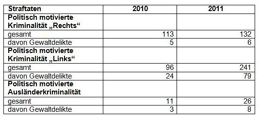 Autonome Linksextremisten führten im Frühjahr 2011 gezielt gegen einzelne Wahlkampfveranstaltungen der NPD massive Proteste durch. Sie verübten in diesem Zusammenhang insgesamt sieben Brandanschläge auf Fahrzeuge von NPD-Funktionären in Bremen und Bremerhaven.