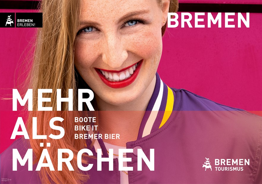 Ab September sollen sechs Werbemotive die Stadt in ganz Deutschland als jung-dynamisches, kreatives Städtereiseziel positionieren und zeigen, dass Bremen mehr bietet als die märchenhaften Bremer Stadtmusikanten. Die identitätsstiftende Kraft des Märchens wird mit dem Kampagnen-Claim "Mehr als Märchen" zitiert, aber deutlich weitergeführt.