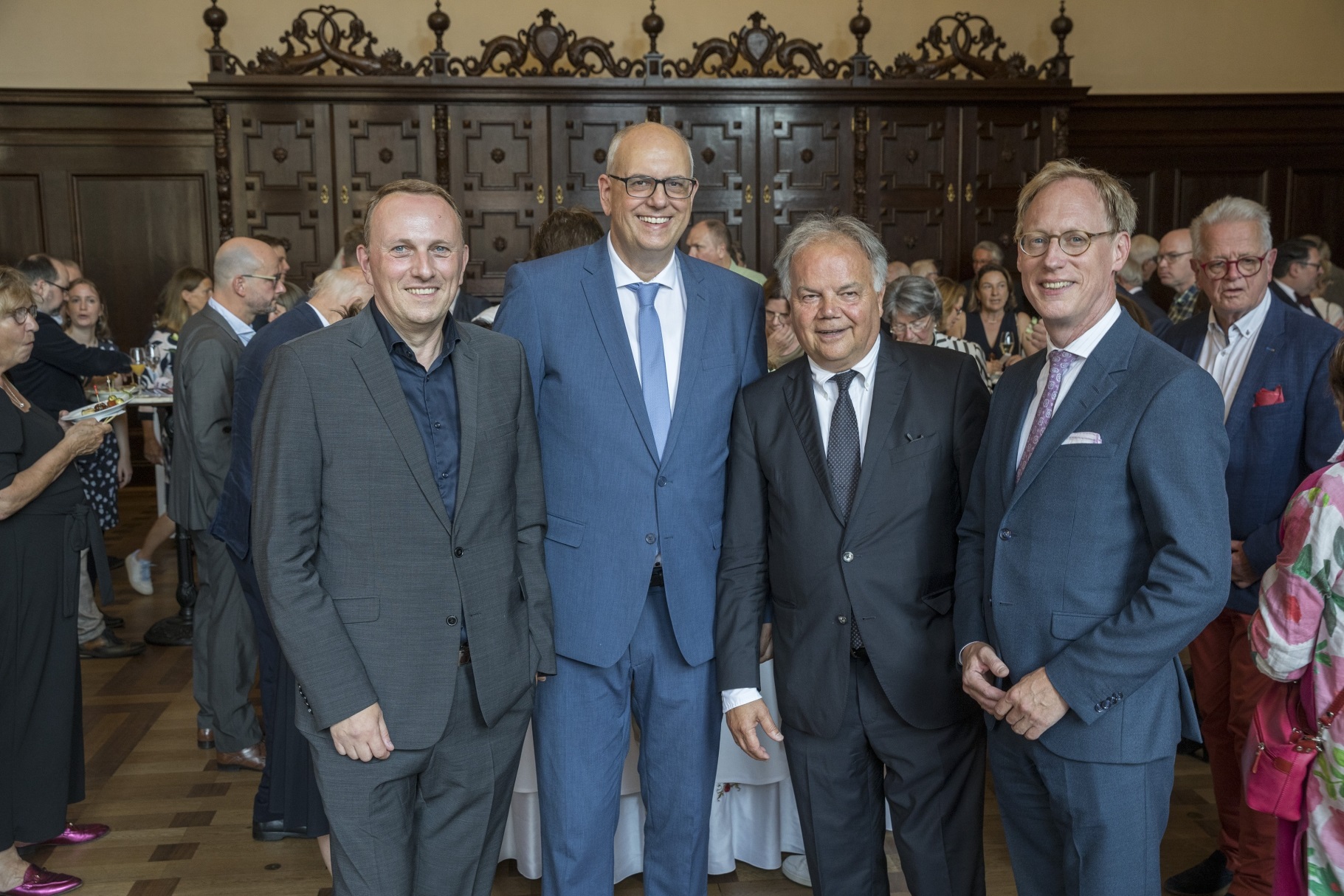 Beim Senatsempfang (von links): David Koopmann (Vorstand Bremer Tageszeitungen AG), Bürgermeister Andreas Bovenschulte, Musikfest-Intendant Prof. Thomas Albert und Cornelias Neumann-Redlin (Hauptgeschäftsführer Unternehmensverbände Bremen). Foto: Nikolai Wolff/fotoetage