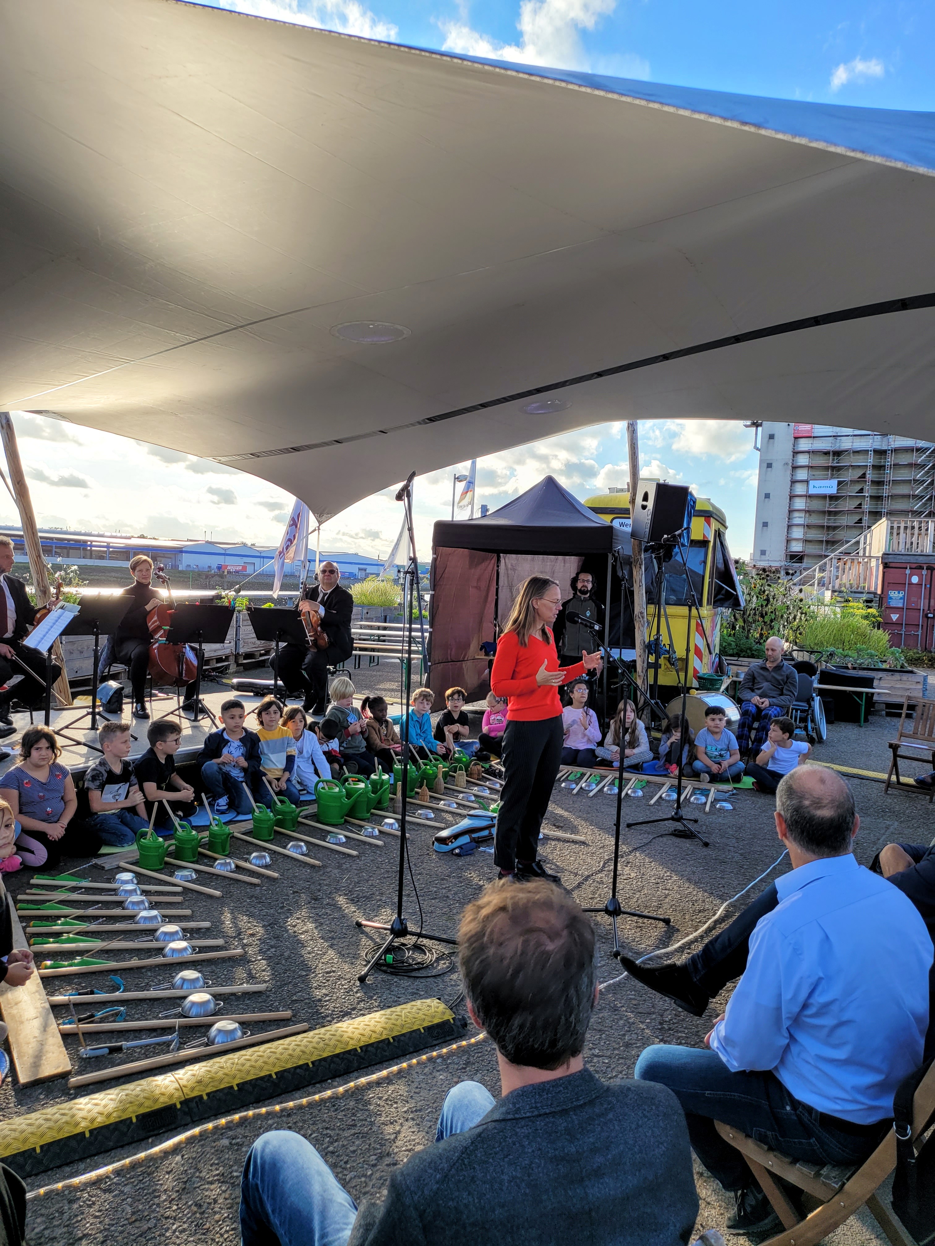 Gleichzeitig wurde in Zusammenarbeit mit der Musikwerkstatt der Bremer Philharmoniker Erfahrung mit Musik und Musikinstrumenten gesammelt. Sascha Aulepp betonte: "Und wir wissen aus den vielen Musikvermittlungsprojekten: Die Bremer Philharmoniker können es einfach! Sie erfinden immer wieder neue und spannende Projekte, passgenau zugeschnitten auf die Schulen und die verfügbaren Orte."
