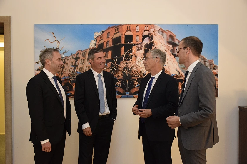 Small talk im Büro von Bürgermeister Carsten Sieling. Markus Keicher (2.v.l.) und sein Vorgänger Peter Theurer (1.v.l.) trafen sich heute (Montag, 5 November 2018) im Bremer Rathaus mit Bremens Regierungschef und Wirtschaftssenator Martin Günthner (re.). Das Treffen diente vor allem dem persönlichen Kennenlernen, nachdem Markus Keicher im September die Leitung im Mercedes Benz-Werk Bremen übernommen hat. Ausgetauscht wurde sich zudem über die Zukunft des Werkes in Bremen - insbesondere über den anstehenden Anlauf des neuen vollelektrischen Modells EQC im kommenden Jahr. Und einig war man sich auch darin, dass das Werk in Bremen für Kontinuität und höchste Qualität steht und man deshalb weiterhin eng miteinander zum Vorteil für die Region Bremen arbeiten werde.