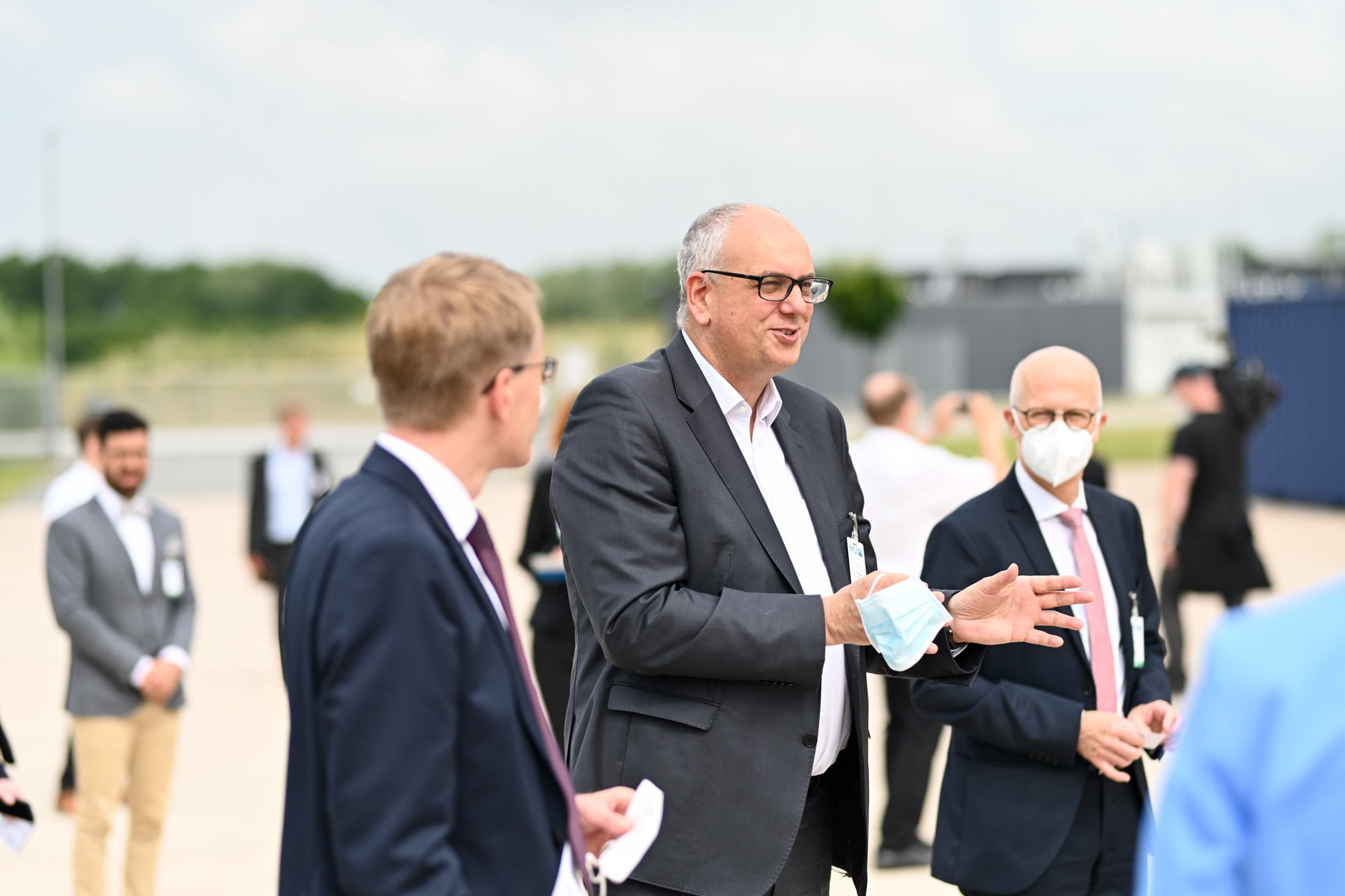 Der Veranstaltungsort wurde passend zum Konferenzthema "Wasserstoff" gewählt. Manuela Schwesig, Daniel Günther, Dr. Peter Tschentscher, Dr. Andreas Bovenschulte und Stephan Weil trafen sich auf dem Gelände der Firma Apex, die seit Ende letzten Jahres Wasserstoff produziert. Mit dem Wasserstoff soll unter anderem der Energiebedarf eines im Aufbau befindlichen Automobilzulieferers abgedeckt werden. Ziel ist der Aufbau eines klimaneutralen grünen Industrieparks.