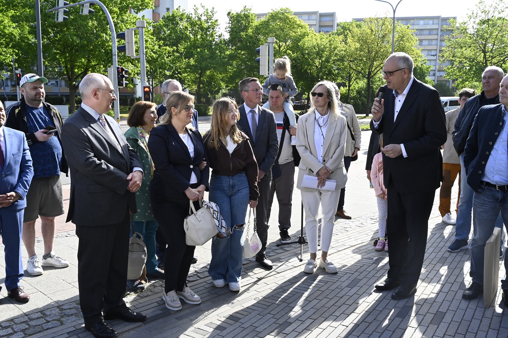 14.05.2022In Erinnerung an den früheren Stadtpräsidenten von Danzig wurde am heutigen Samstag (14. Mai 2022) die "Pawel-Adamowicz-Straße” im Modellquartier Ellener Hof in Bremen-Osterholz feierlich eingeweiht. Pawel Adamowicz war für seine weltoffene Politik bekannt und im Rahmen der Städtepartnerschaft zwischen Danzig und Bremen regelmäßig Gast in der Hansestadt. 2019 kam er bei einem Attentat ums Leben. Im Beisein seiner Witwe Magdalena Adamowicz und seinem Bruder Piotr, Abgeordneter im Sejm, sowie der Danziger Stadtpräsidentin Aleksandra Dulkiewicz ehrte Bremens Bürgermeister Andreas Bovenschulte das Wirken Adamowicz' und seine Arbeit für Danzig und Bremen.