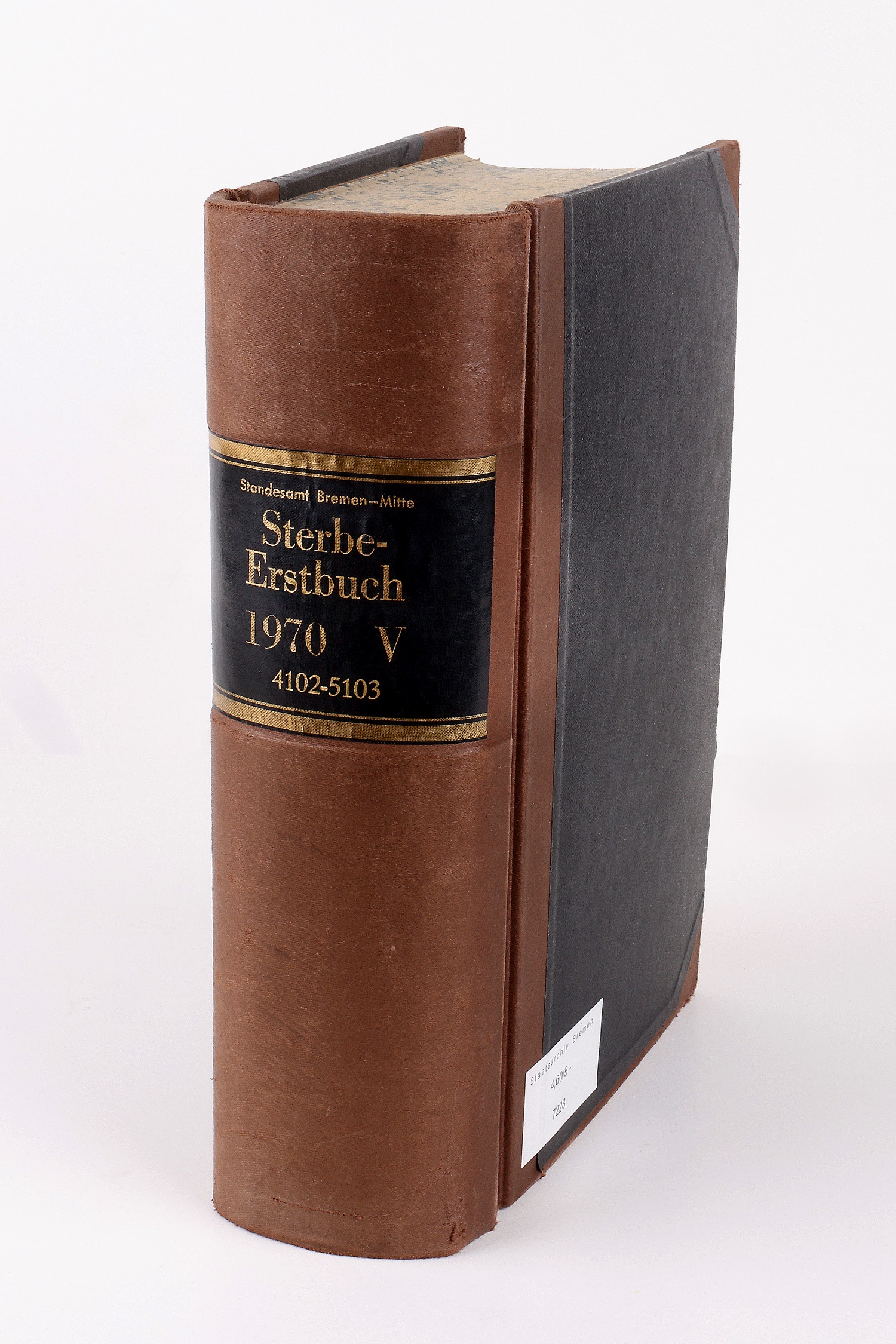 Ein Sterbebuch des Standesamts Bremen Mitte aus dem Jahr 1970. Foto: Staatsarchiv