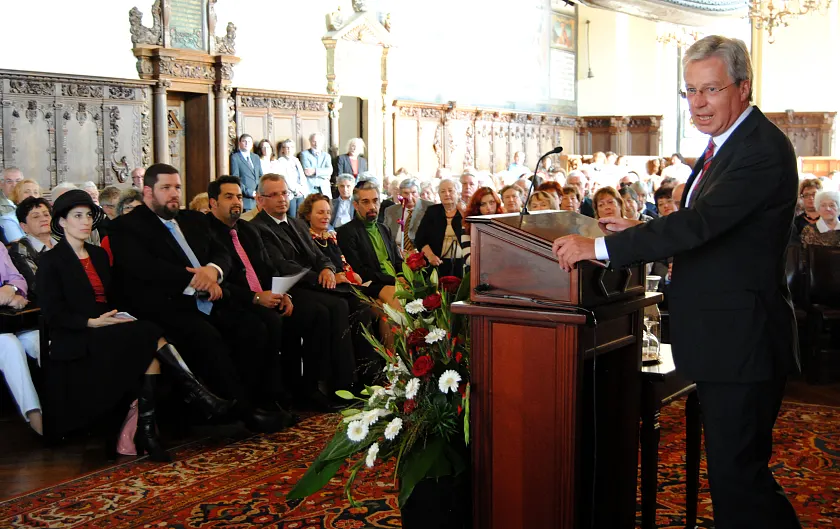 Beeindruckt zeigte sich der Bürgermeister über ein Zitat von Dieter Graumann, Präsident des Zentralrates der Juden in Deutschland. Er hatte in seiner Rede zum 50jährigen Jubiläum der Synagoge in Bremen vor wenigen Wochen erklärt: „Die Juden haben in Deutschland wieder ein Zuhause.“ Diese Aussage, so Jens Böhrnsen, sei ein großer Schritt nach vorne. Solange es in Deutschland aber noch nötig sei, jüdische Einrichtungen und Feste polizeilich zu schützen, solange gäbe es noch viel zu tun für ein menschenwürdiges Miteinander.