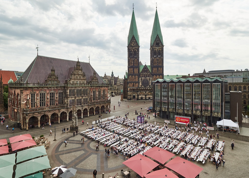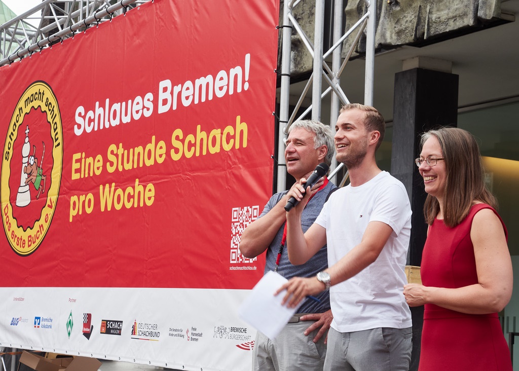 Auch in diesem Jahr spielten wieder fast 1.000 Kinder aus Bremen und Bremerhaven Schach auf dem Bremer Marktplatz. Die Aktion ist krönender Abschluss des Projektjahres, in dem die teilnehmenden Kinder jede Woche eine Stunde Schach im Rahmen des Unterrichts gespielt haben.