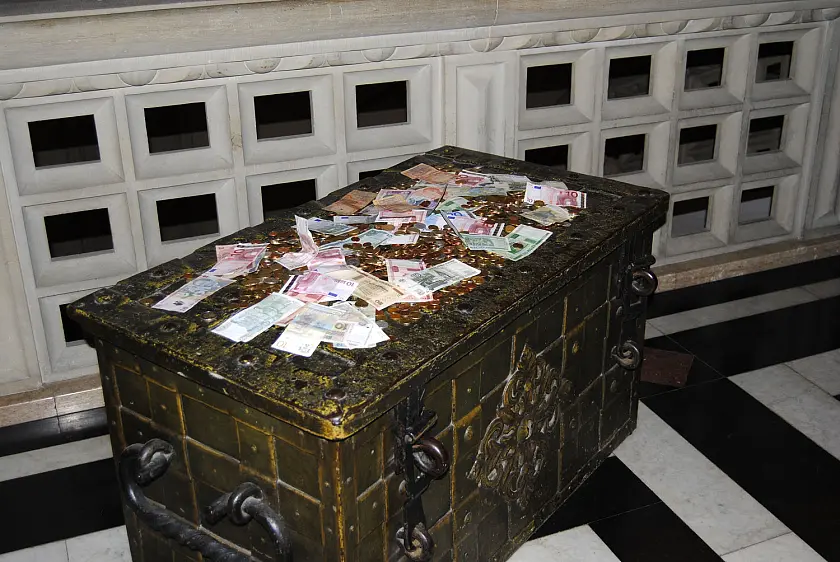 Ganz gleich, wer wie viel in die Truhe hineinwirft – es ist allemal freiwillig und eine willkommene Gabe für die Rathausverwaltung. Ob nun aus Begeisterung über die Schönheiten im Weltkulturerbe Rathaus, als Spende beim Welterbetag oder als Anerkennung für eine gelungene historische Erklärung – die Truhe ist ein prima Ort für spontane Reaktionen. Und gut angelegt ist das eingeworfene Geld allemal: Es fließt in den Topf für Sanierungsmaßnahmen, die im Rathaus ja immer wieder anfallen und dafür sorgen, dass das Welterbe sich stets in Bestform präsentiert.