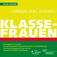 Schulklassen, jetzt anmelden: "Klasse-Frauen: Lernen mal anders", die Vorbild-Aktion der Senatorin für Kinder und Bildung und der Bremischen Zentralstelle für die Verwirklichung der Gleichberechtigung der Frau (ZGF), startet jetzt: Anmeldungen von Klassen und Kursen sind ab sofort möglich.